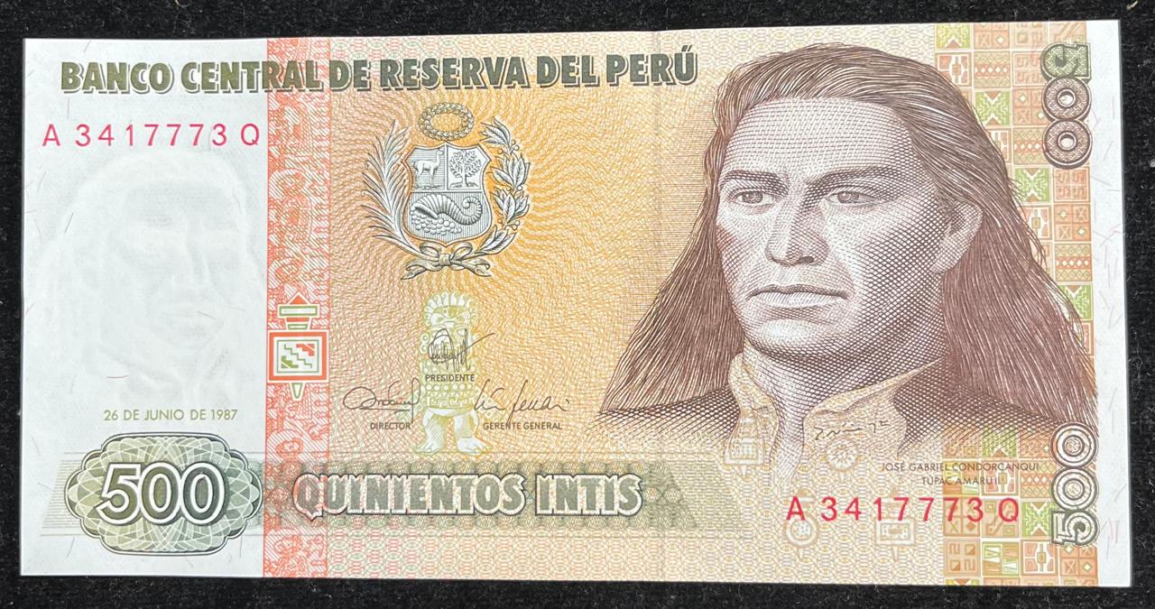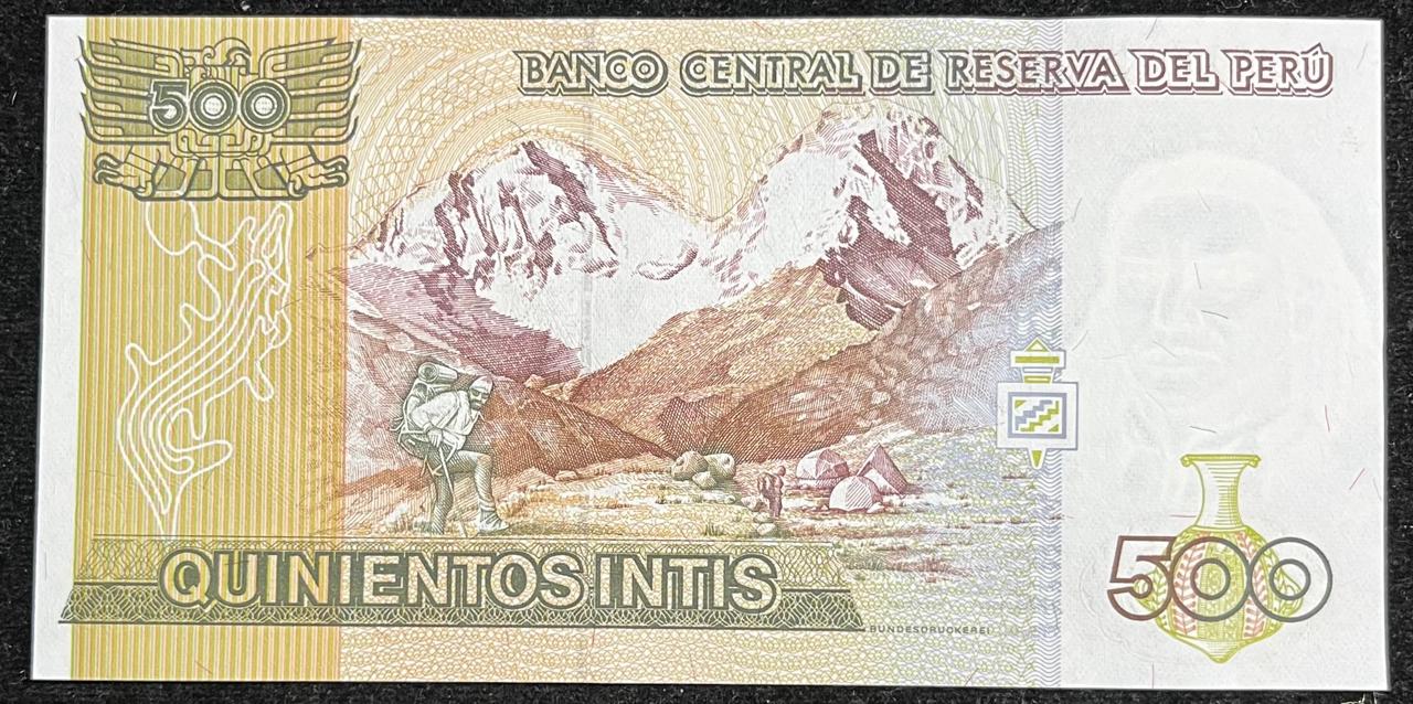 DEL PERU 500 QUINIENTOS INTIS UNC BANK NOTE