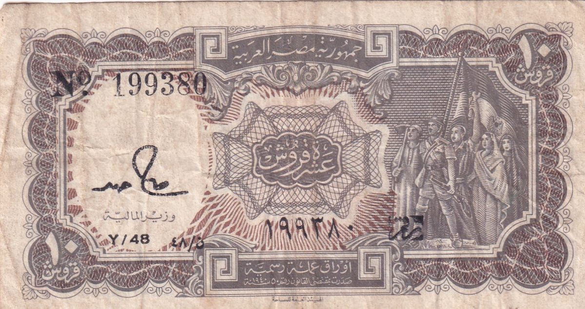 Egypt 10 Piastres Flag with three stars Rare Note #b-2