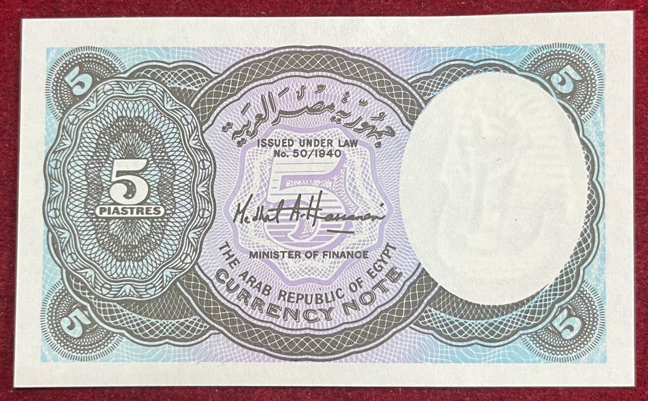 EGYPT 5 PIASTRES UNC BANK NOTE