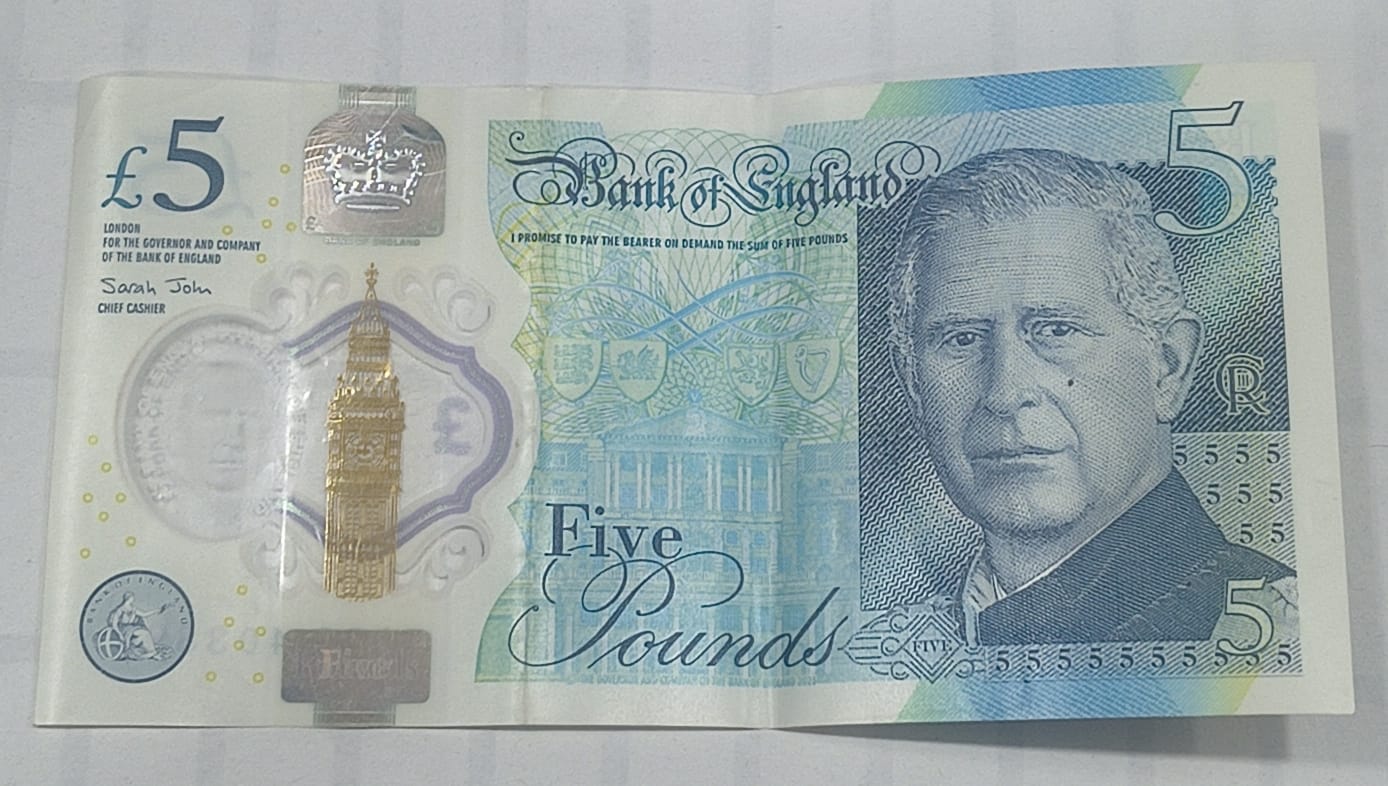 England 5 Pounds – Charles III (Sir Winston Churchill) Polymer Note #B-2