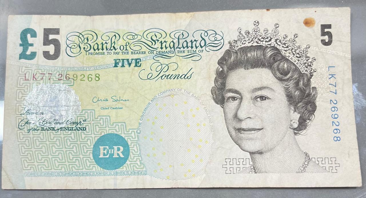 ENGLAND 5 POUNDS old ishu RARE NOTE # B-2