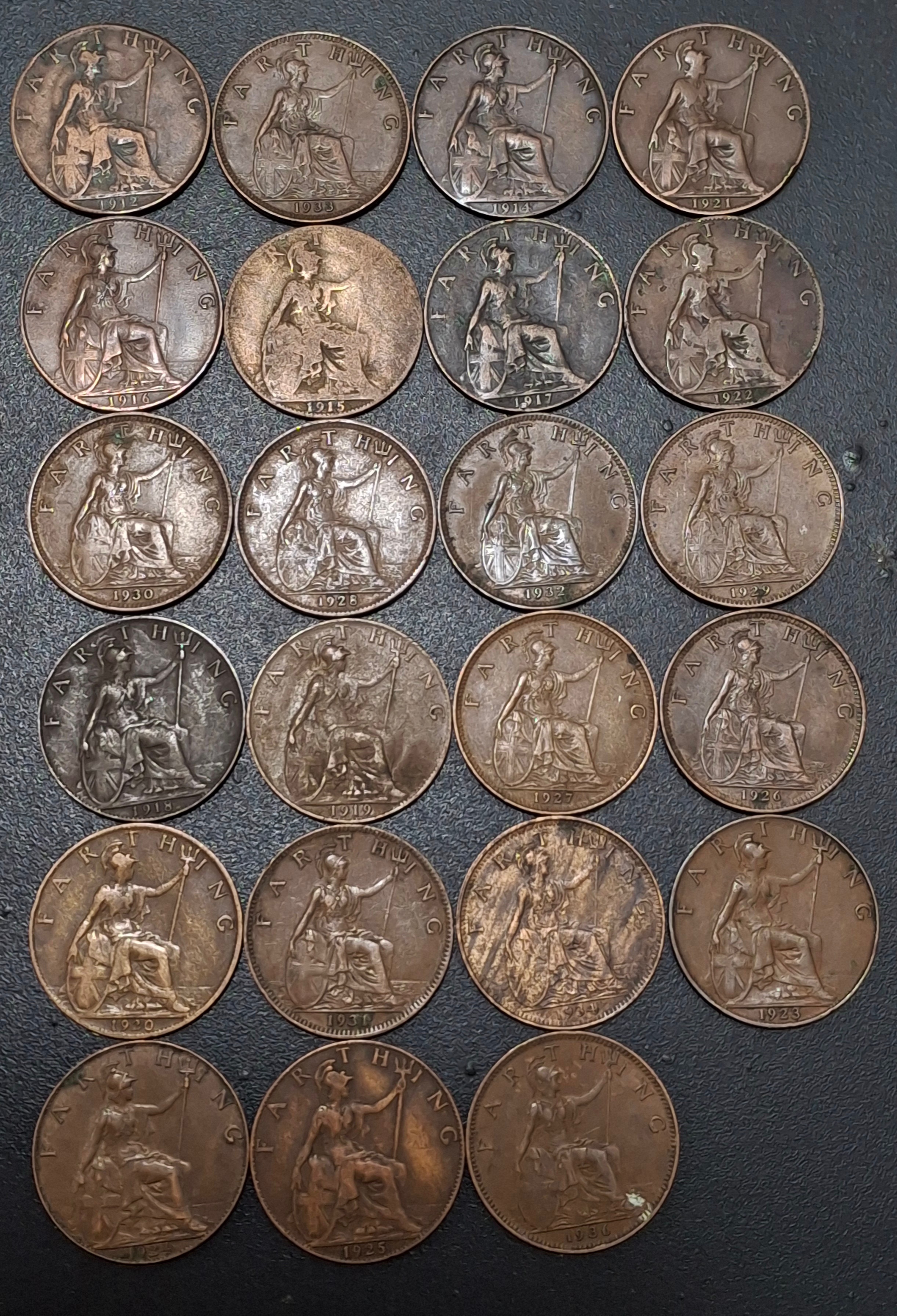 ENGLAND GEORGE FIFTH ONE FARTHING ALL DIFFERENT DATES SET #A-431