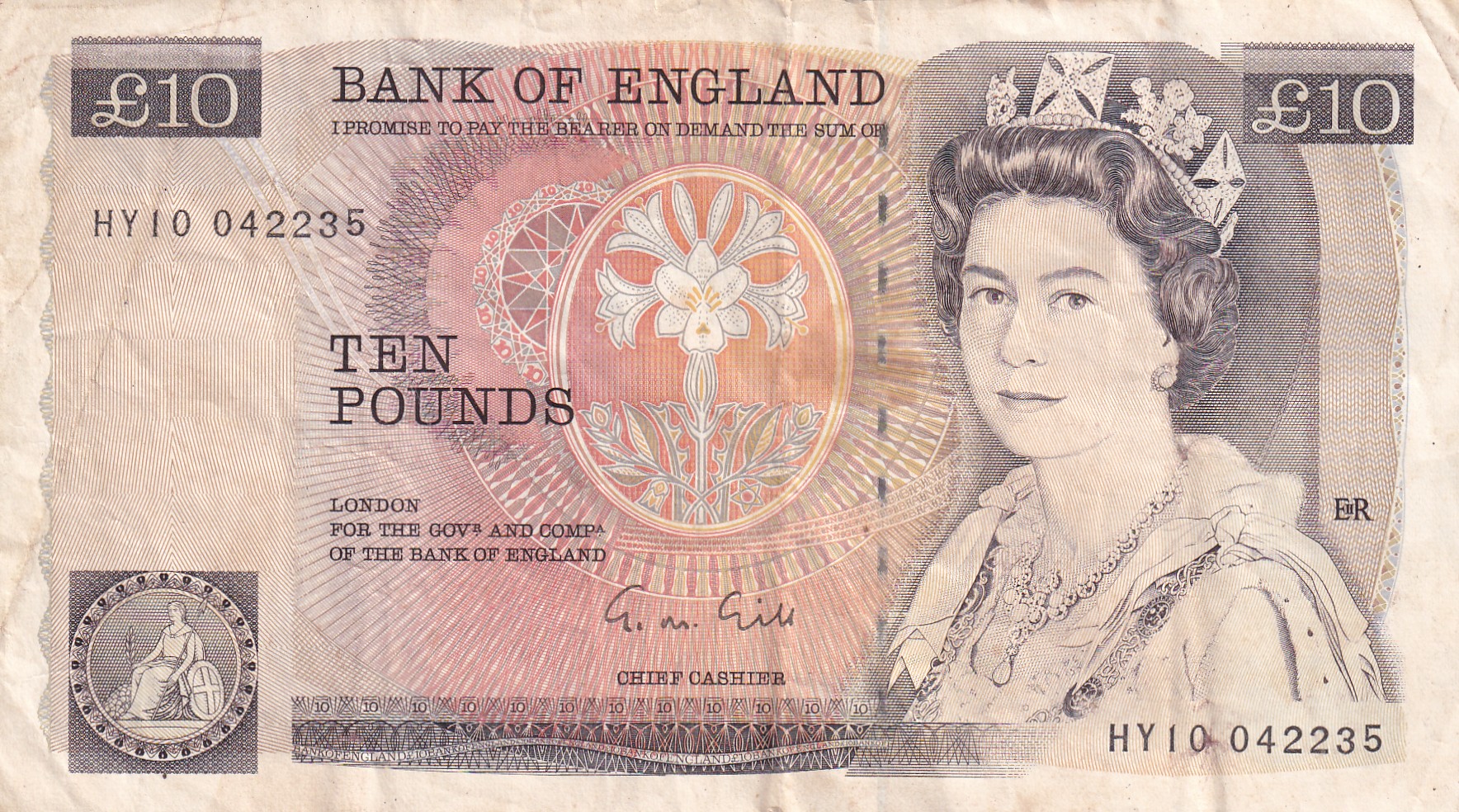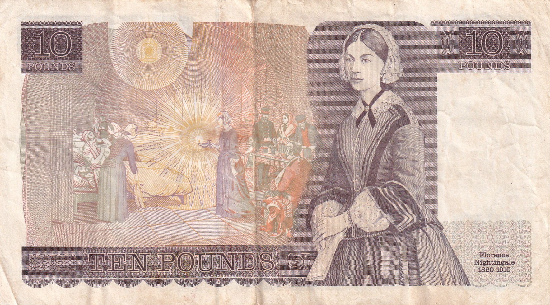 England (United Kingdom) 10 Pound (Elizabeth II Florence Nightingale) Rare Bank Note#B-2