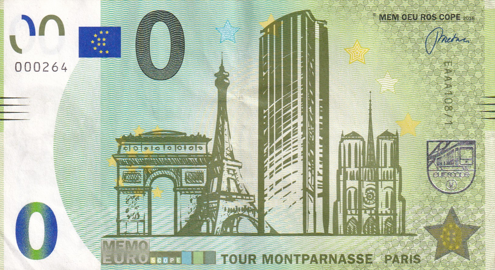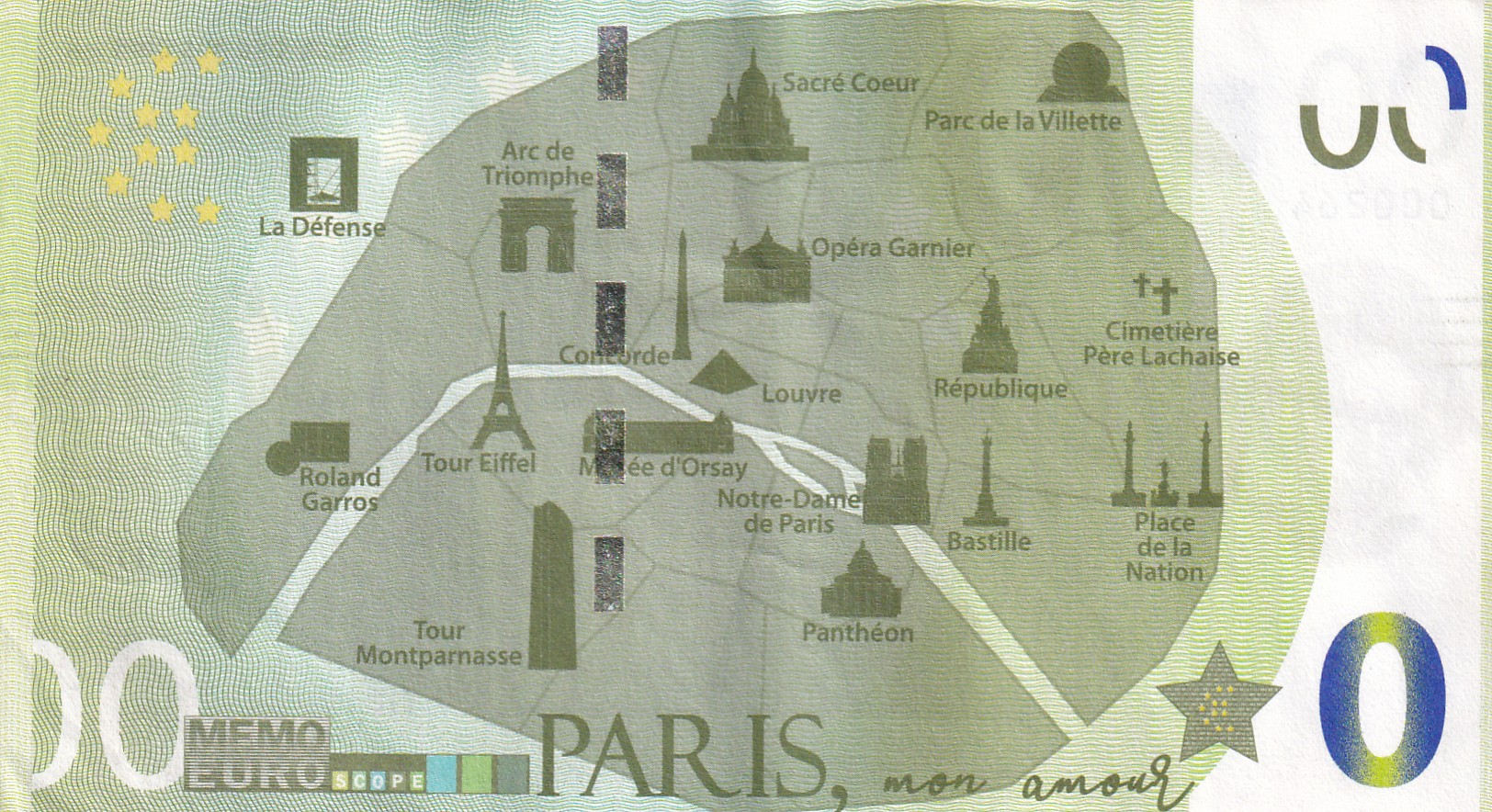 France 0 Euro (Memoeuro – Paris) Rare World Note #B2