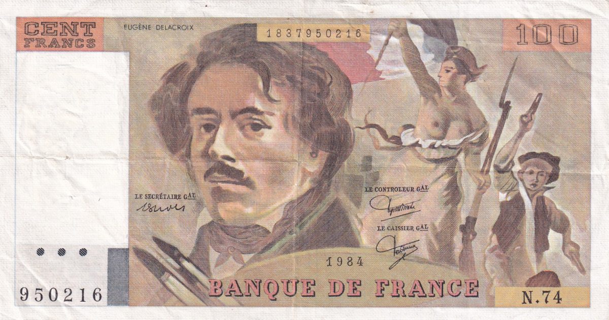 France 100 Francs Delacroix type LOWEST PRICE RARE NOTE #B-2