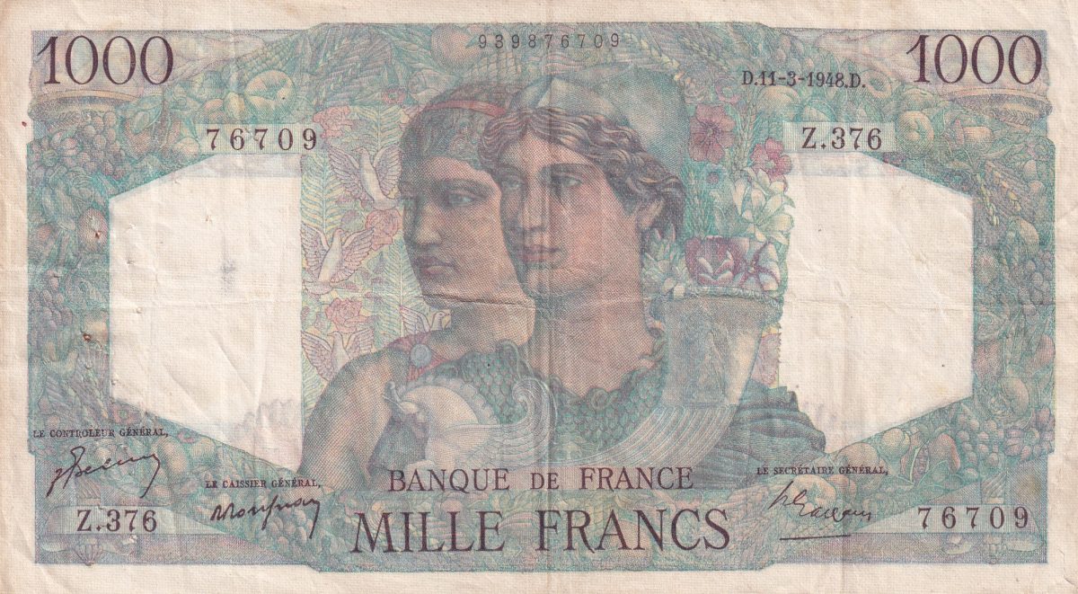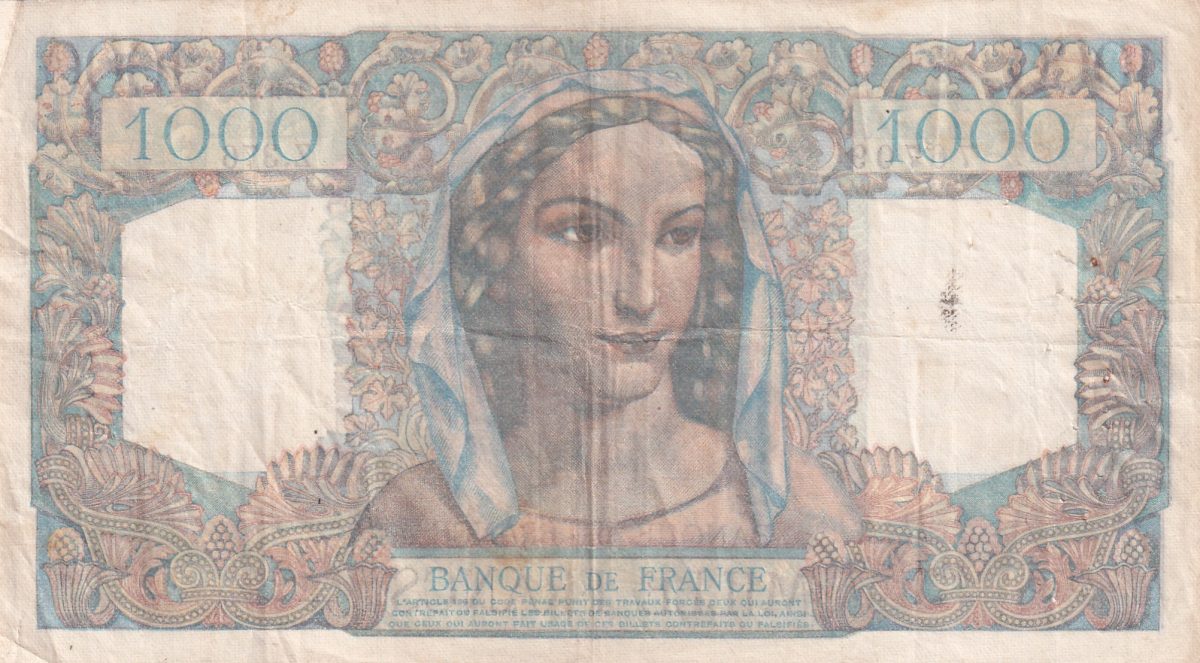 France 1000 Francs – Minerve & Hercule type 1945 Rare Bank Note