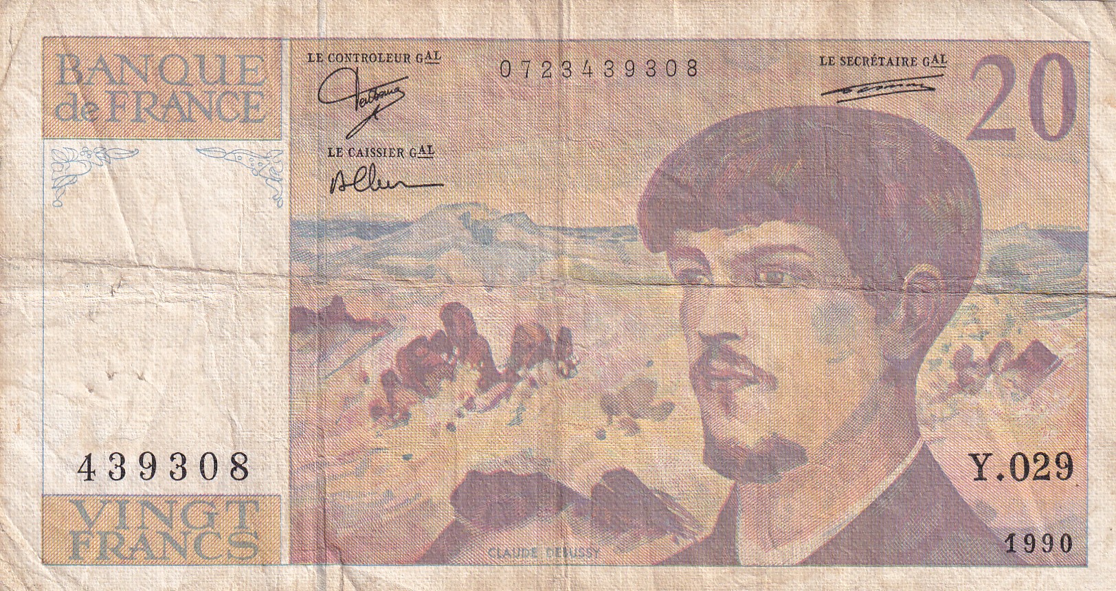 France 20 Francs (Debussy 1980) Rare World Note#B2