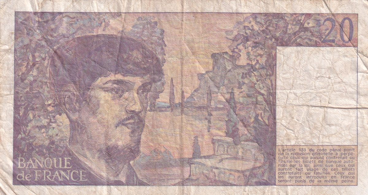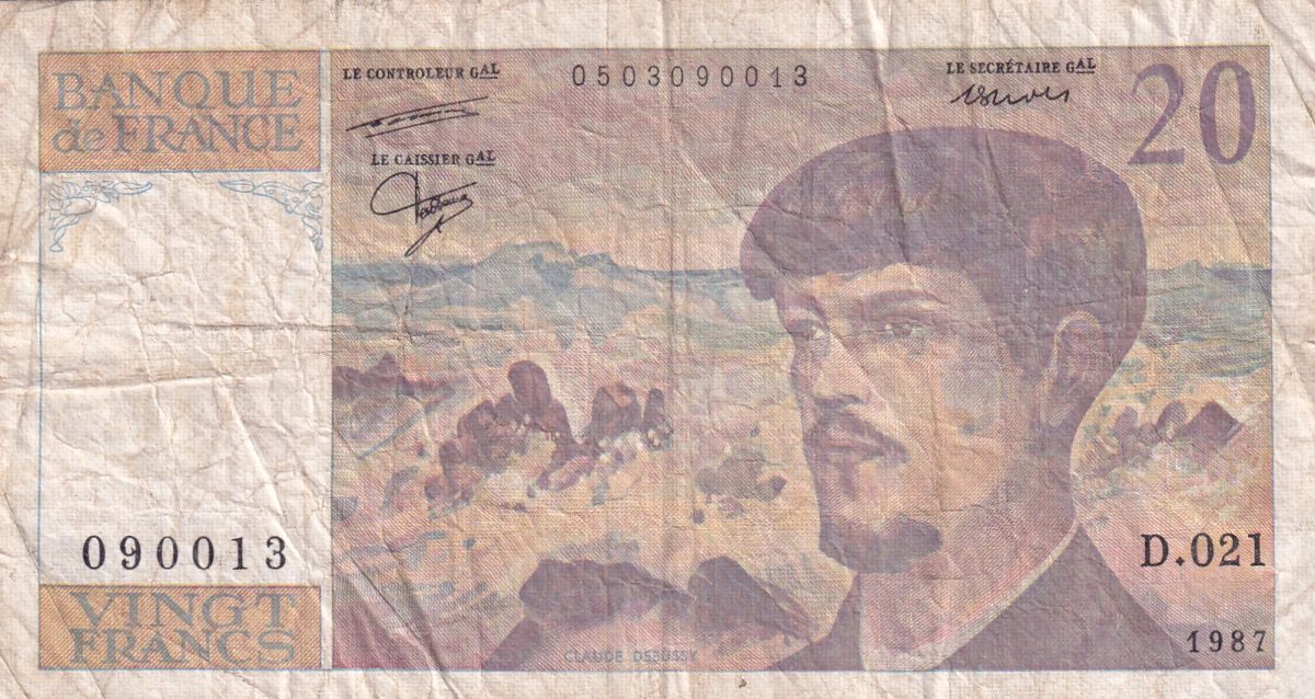 France 20 Francs – Debussy type 1980 modificated RARE NOTE #B-2