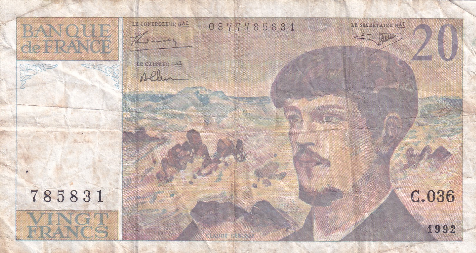 France 20 Francs – Debussy type 1980 RARE NOTE