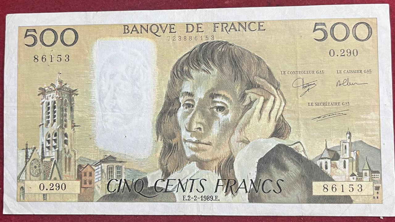 FRANCE 500 FRANCS 1989 BIG SIZE RARE NOTE #B-2