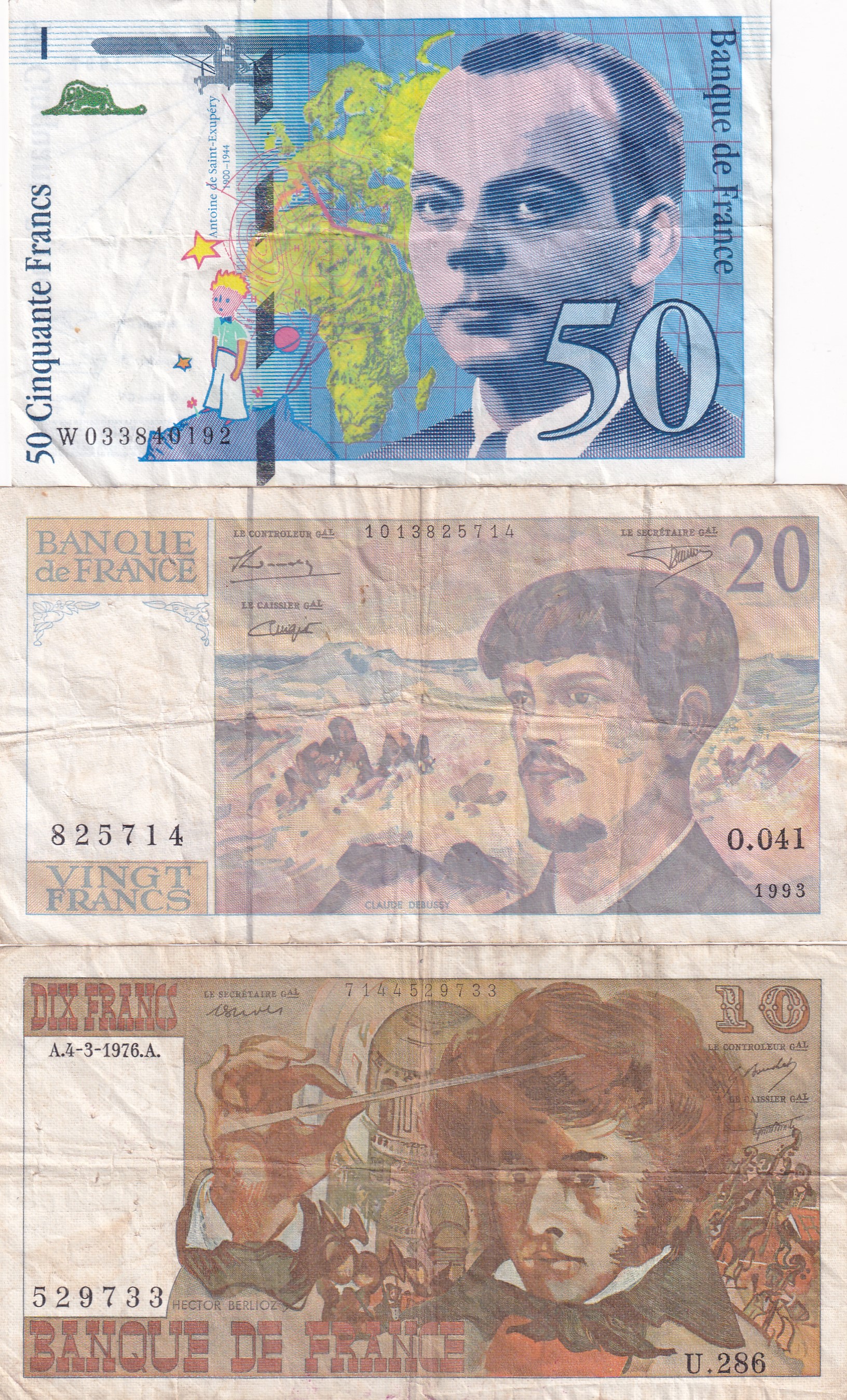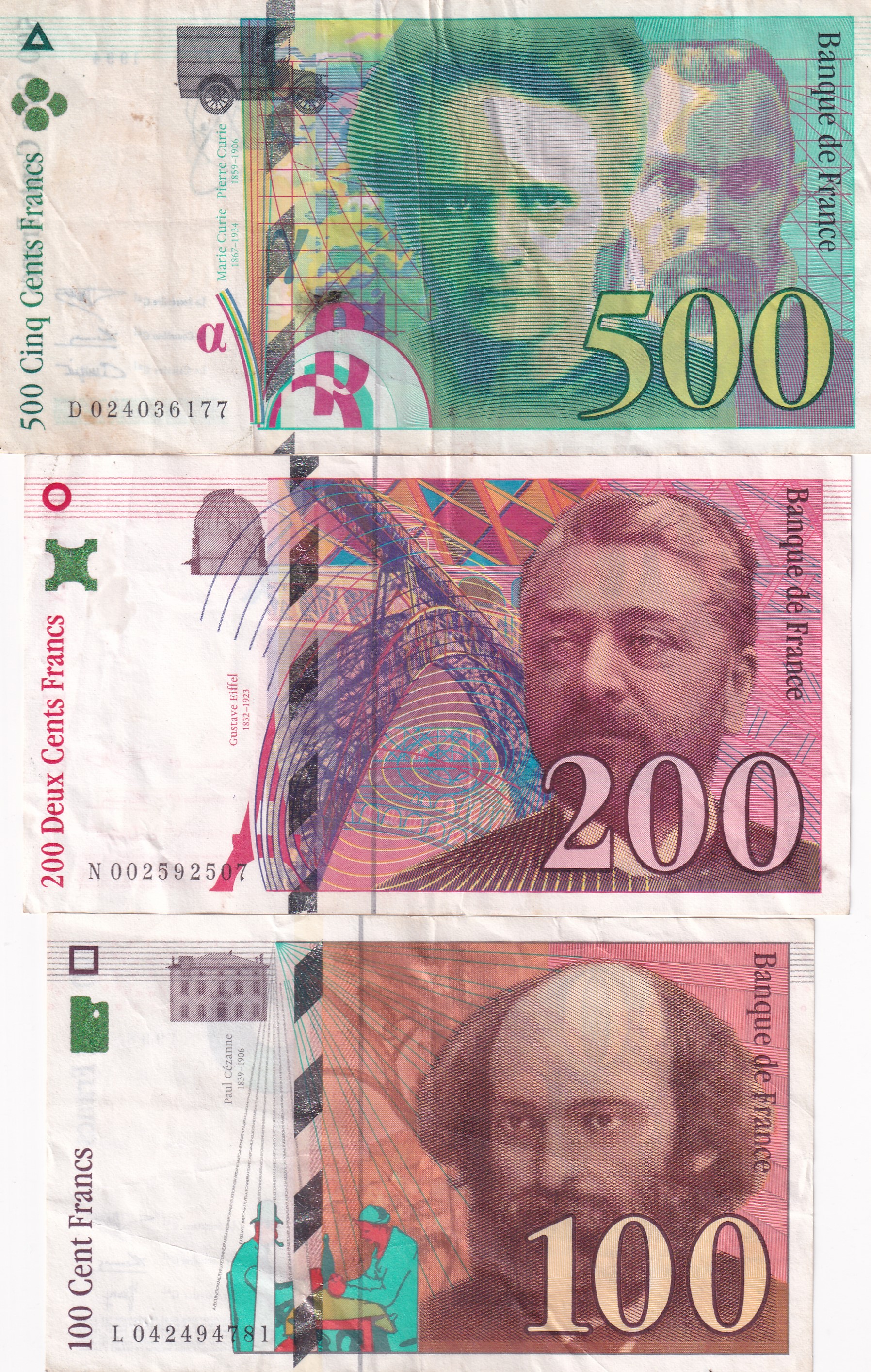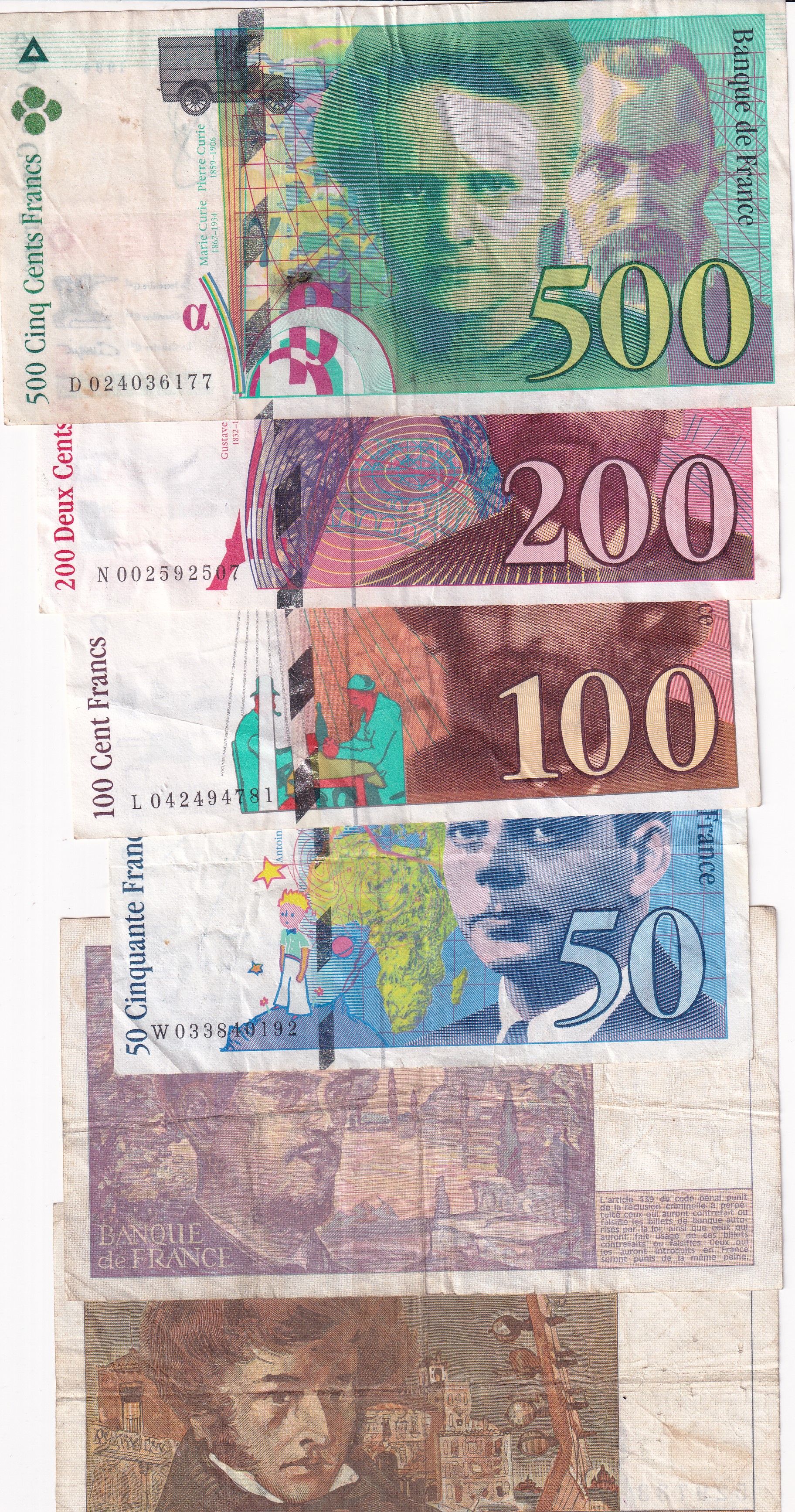 FRANCS 6 DIFFERENT DENOMINATION OLD ISSUE RARE (6 NOTE SET)