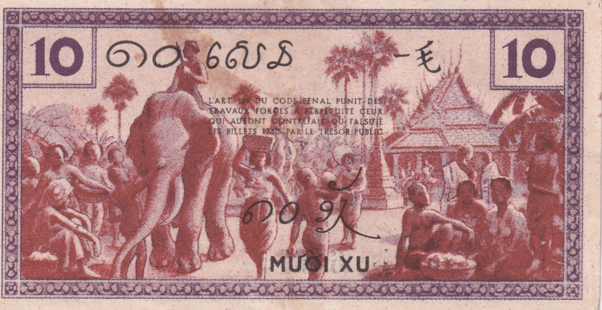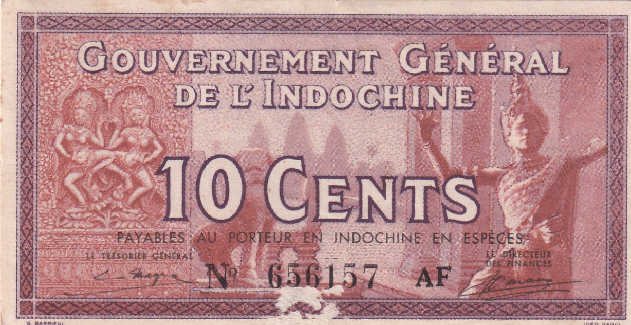 FRENCH INDOCHINA 10 CENT 1939 VERY RARE TOP CONDITION NOTE #B-2