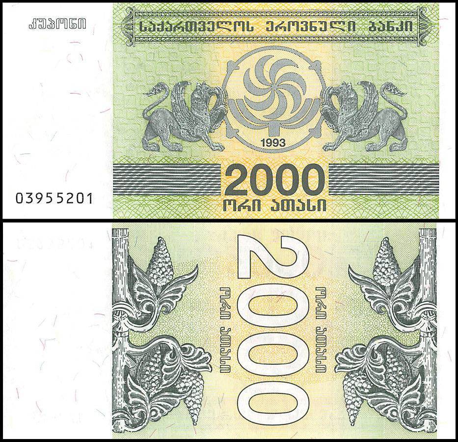 Georgia 2000 Kuponi Banknote 1993 P44 UNC Unique and Rare