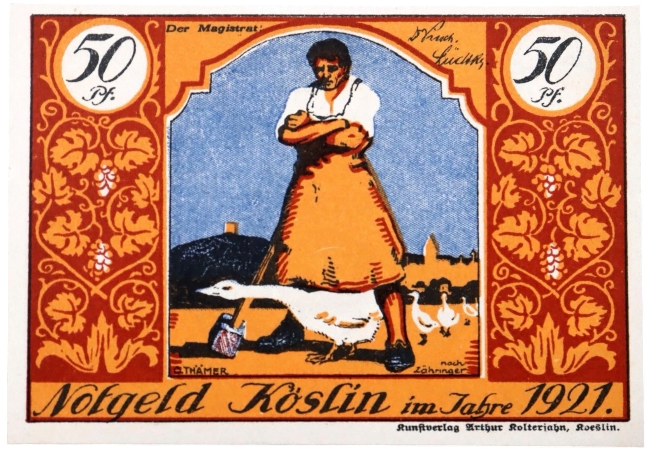 Germany Poland Koslin 50 Pfennig Notgeld 1921 Goose Scene UNC and Rare