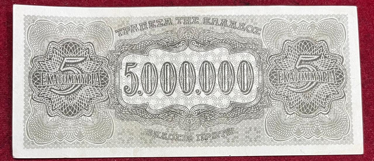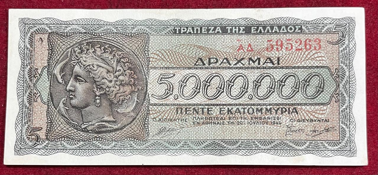 GREECE 5000000 DRACHMAI 1944 TOP CONDITION NOTE