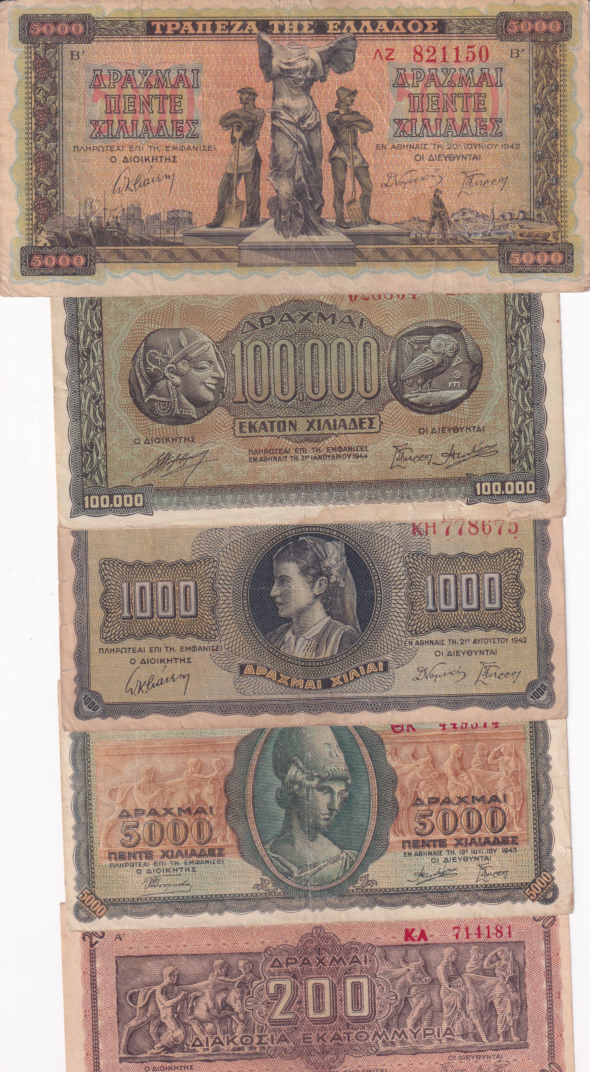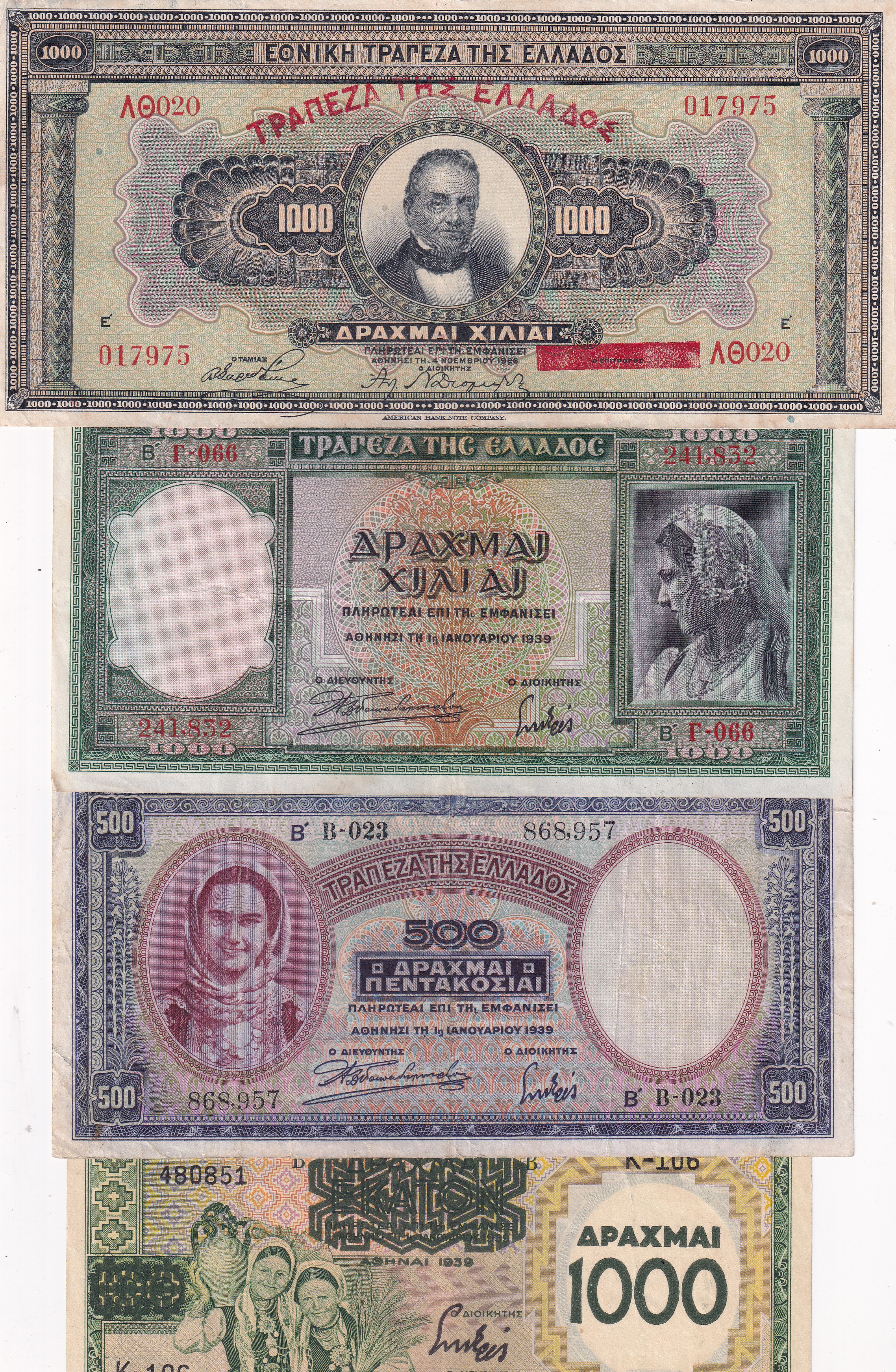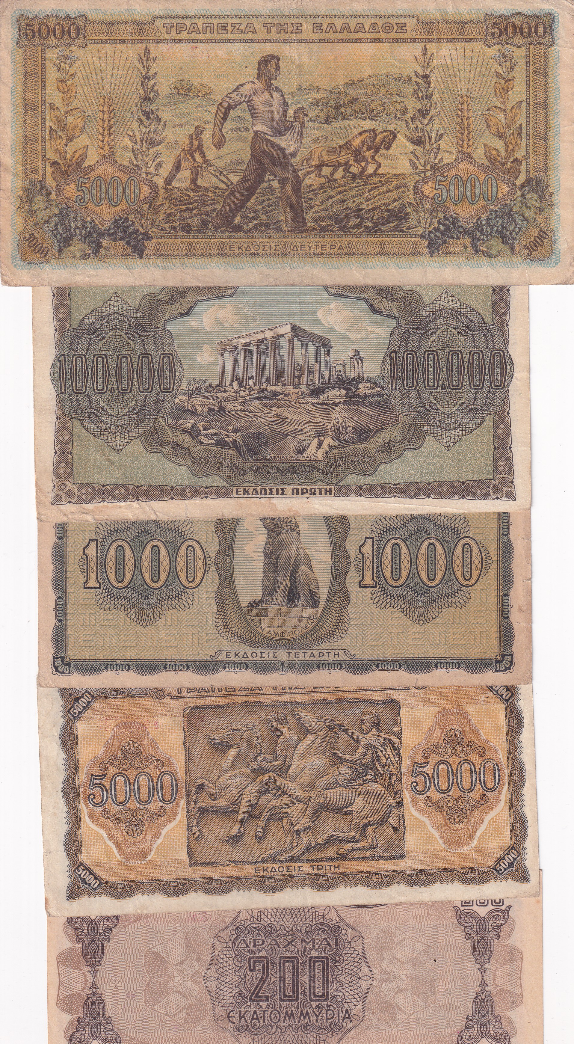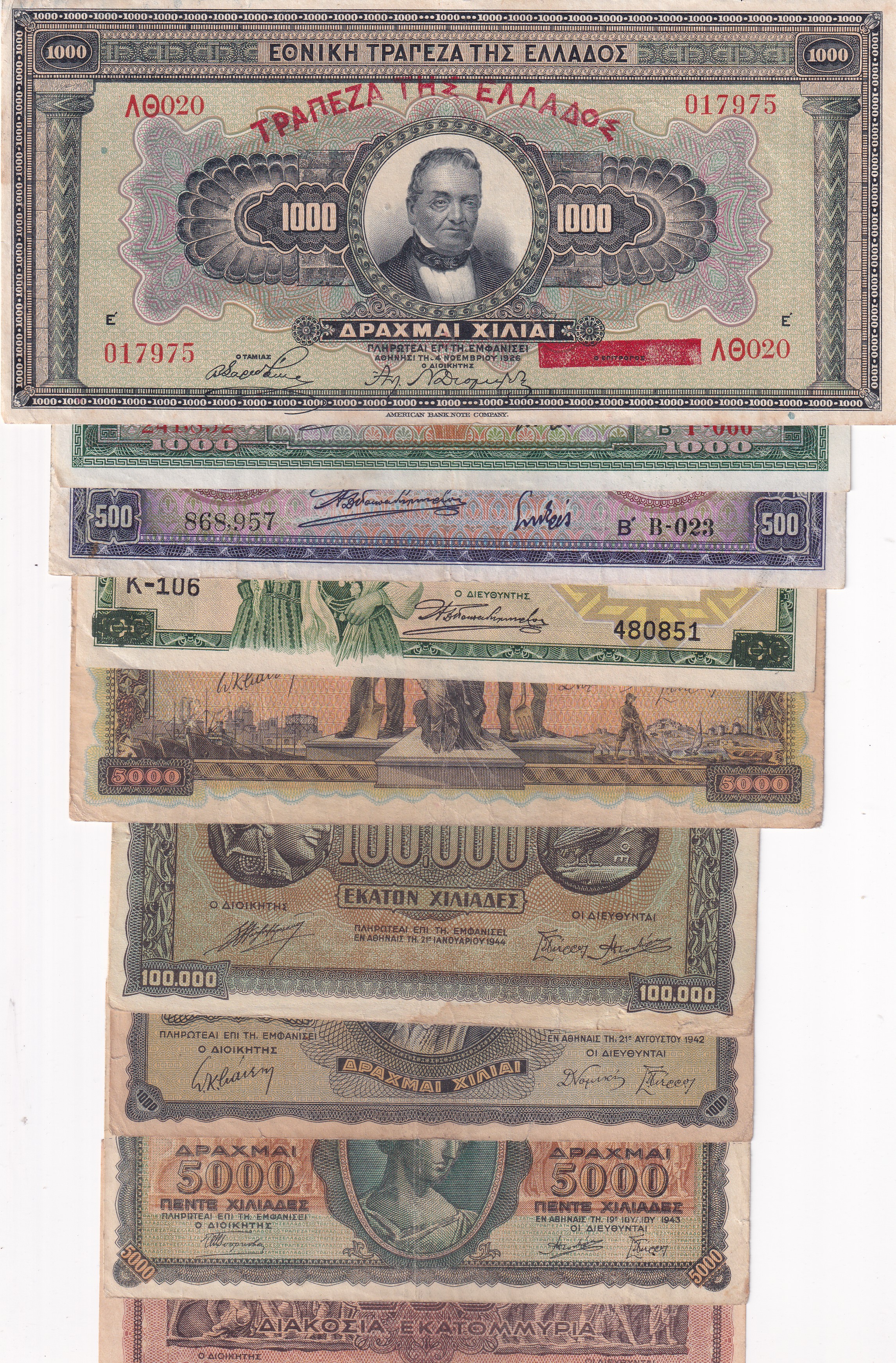 GREECE 9 DIFFERENT OLD SERIES RARE ( 9 NOTE SET)
