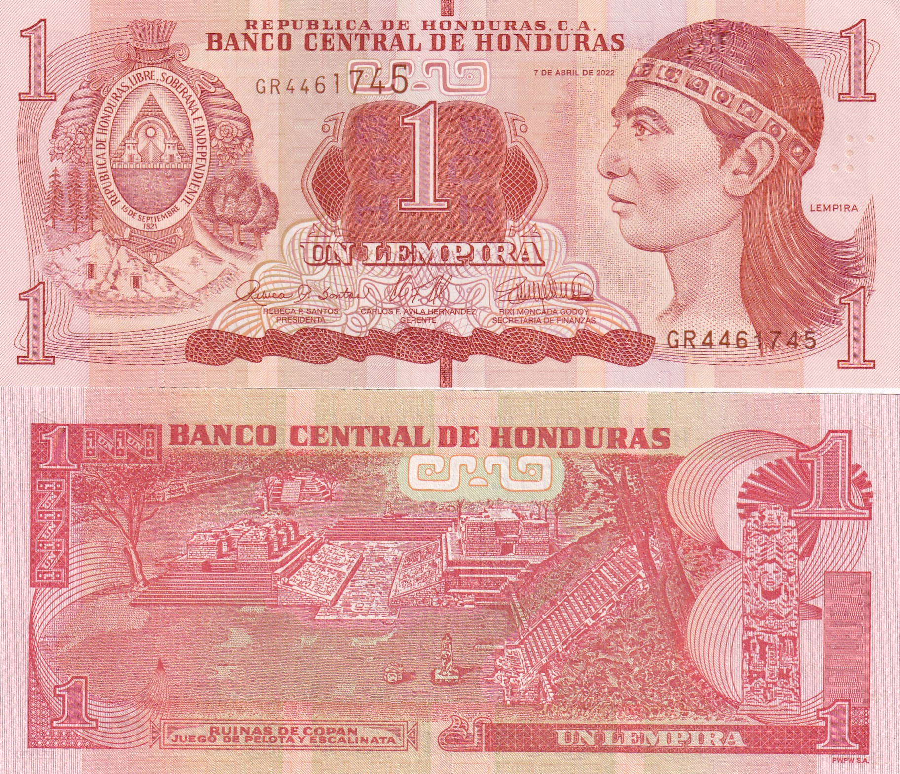 HONDURAS 1 LEMPIRA (With vertical bar) GEM UNC RARE NOTE
