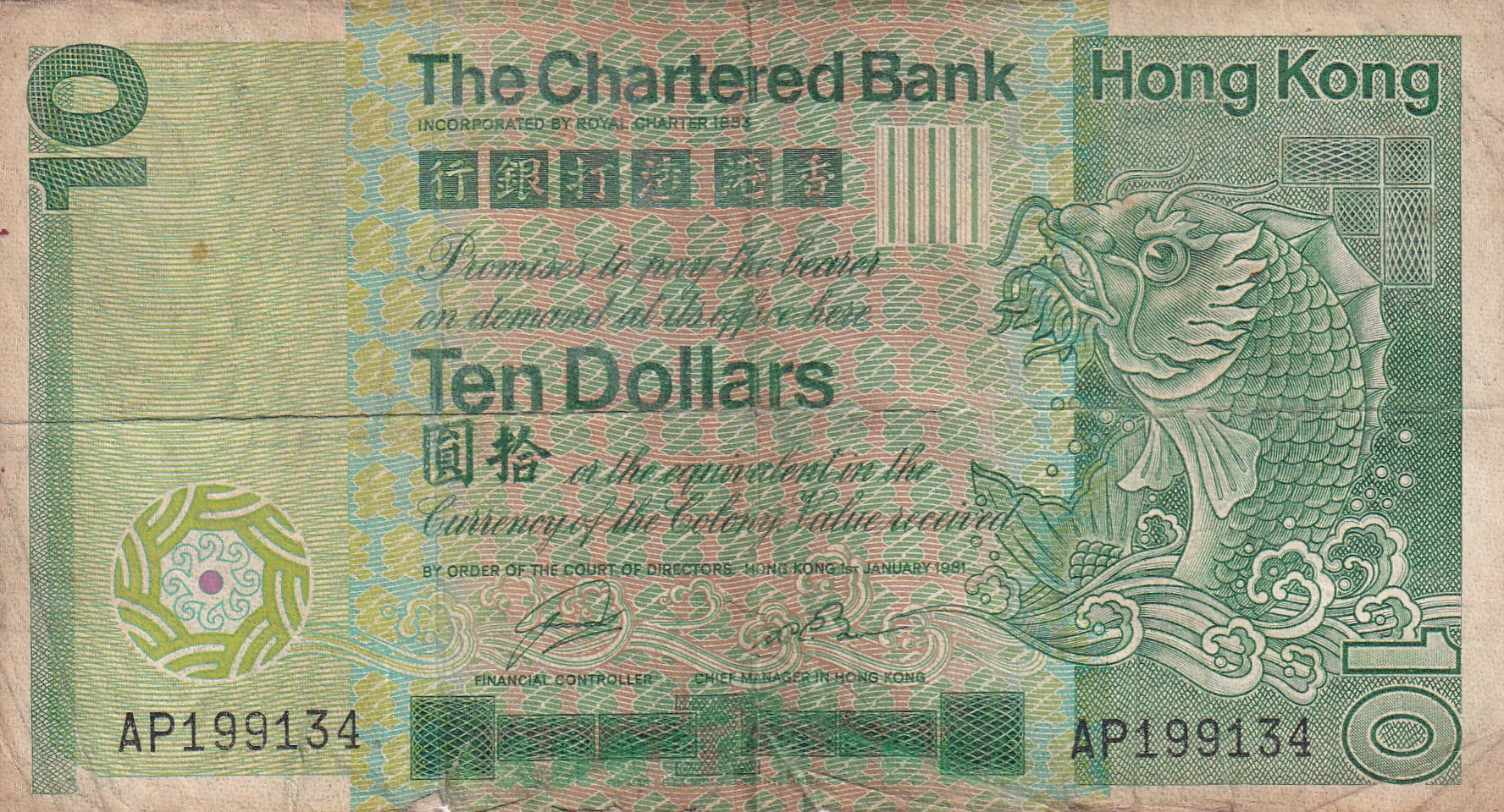 HONG KONG 10 DOLLARS (1980-1981) BANK NOTE LOW CONDITION #B-2