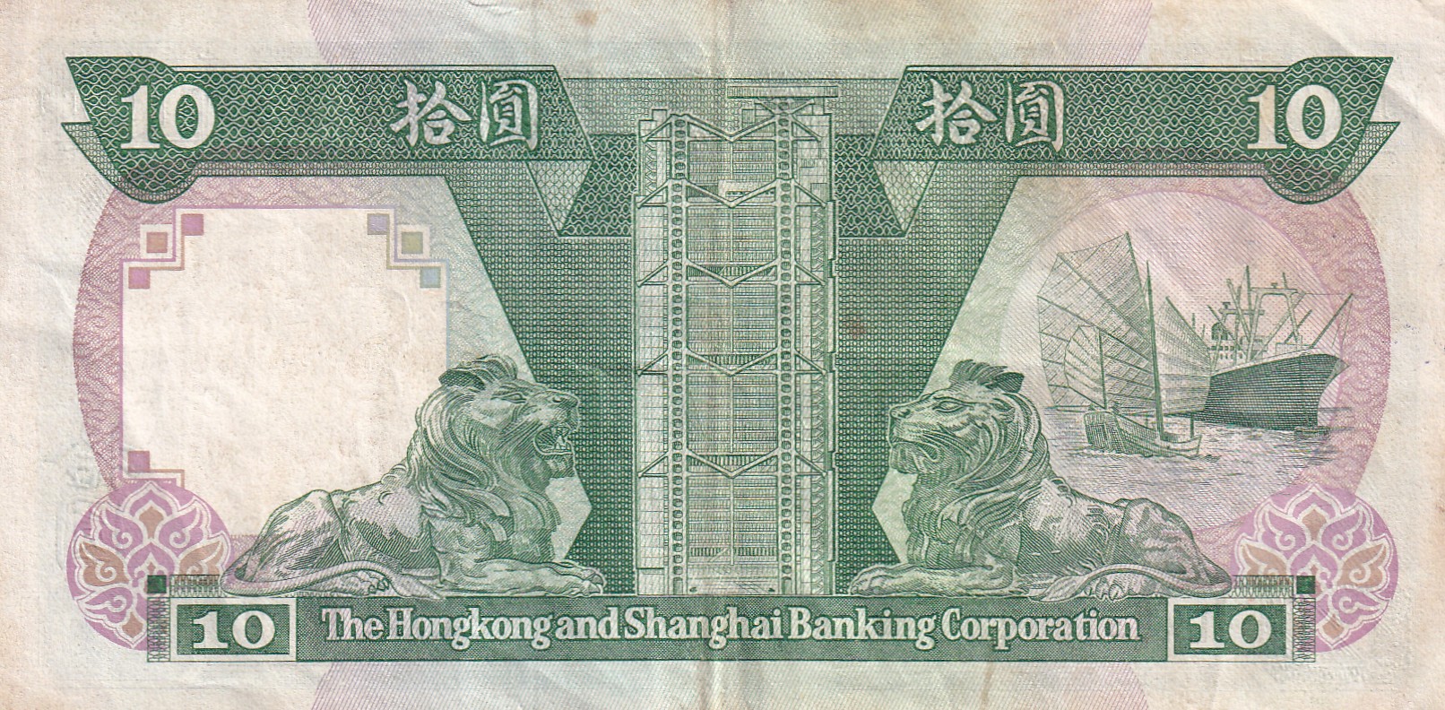 Hong Kong (China) 10 Dollars Rare Bank Note#B-2