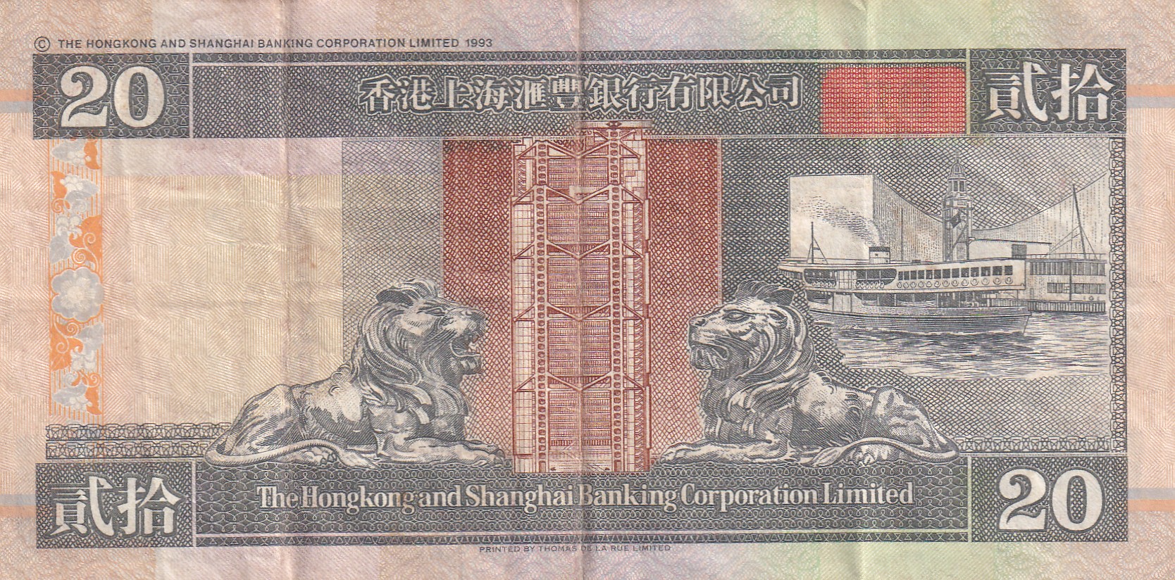 HONG KONG (CHINA) 20 DOLLARS ( HSBC ) BANK NOTE #B-2