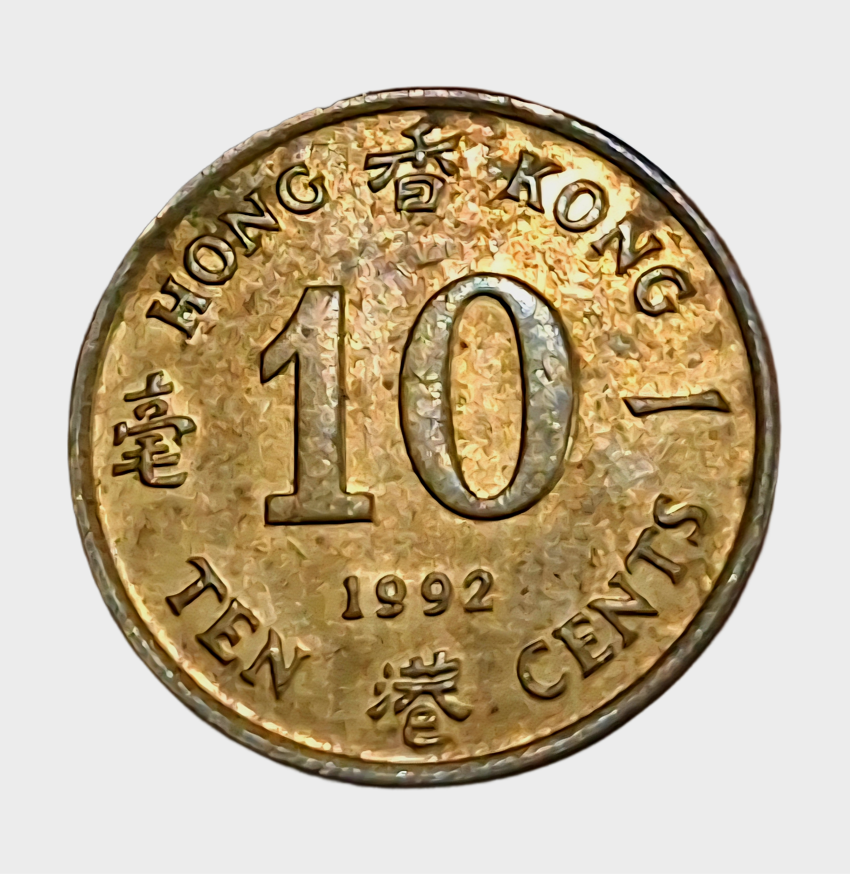 HONG KONG Copper 10 CENTS Year 1992 Queen ELIZABETH-II “Small Size” **SCARE** High Collectable Grade.