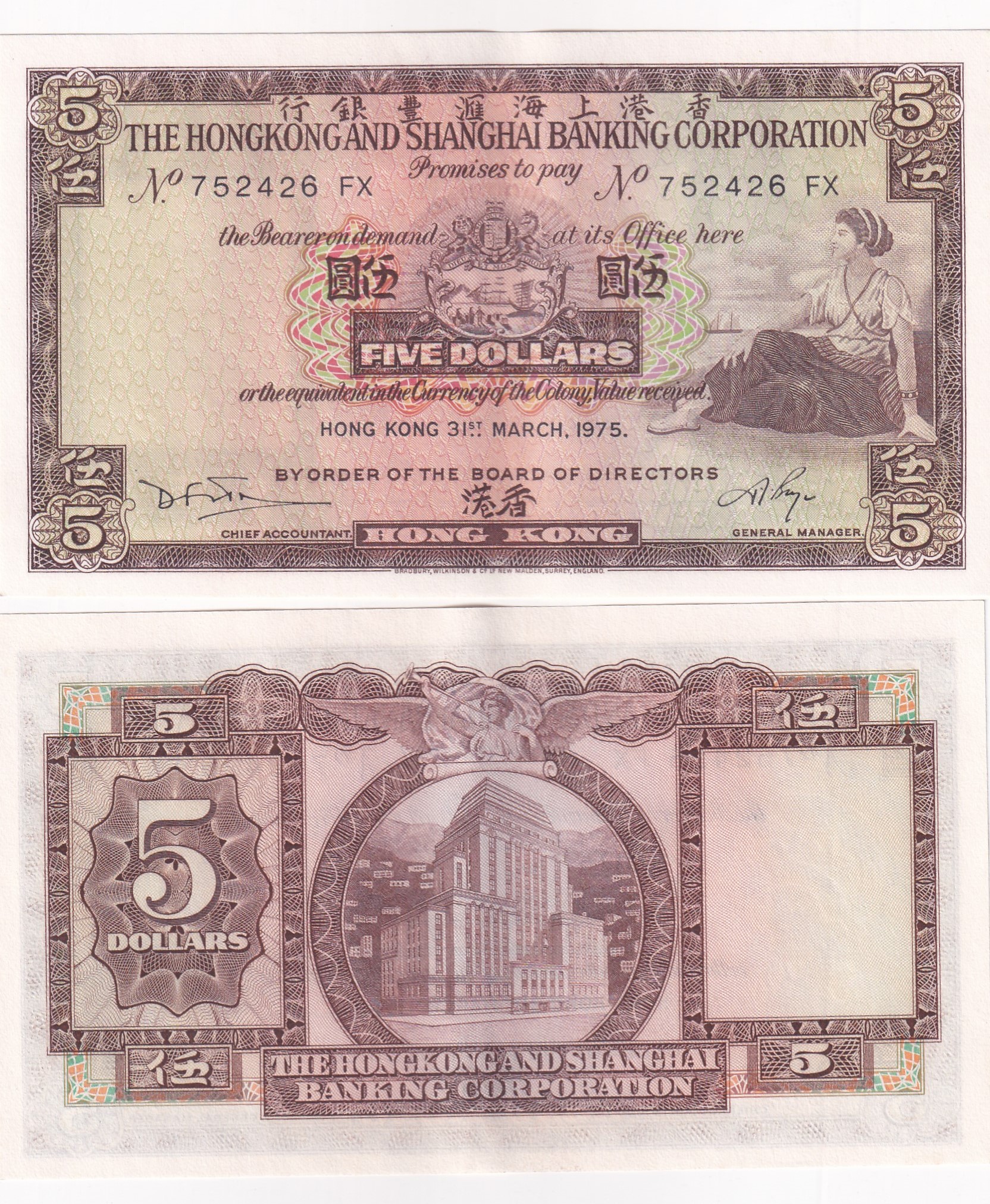 HONGKONG 5 DOLLARS HSBC RARE A-U CONDITION NOTE #Q