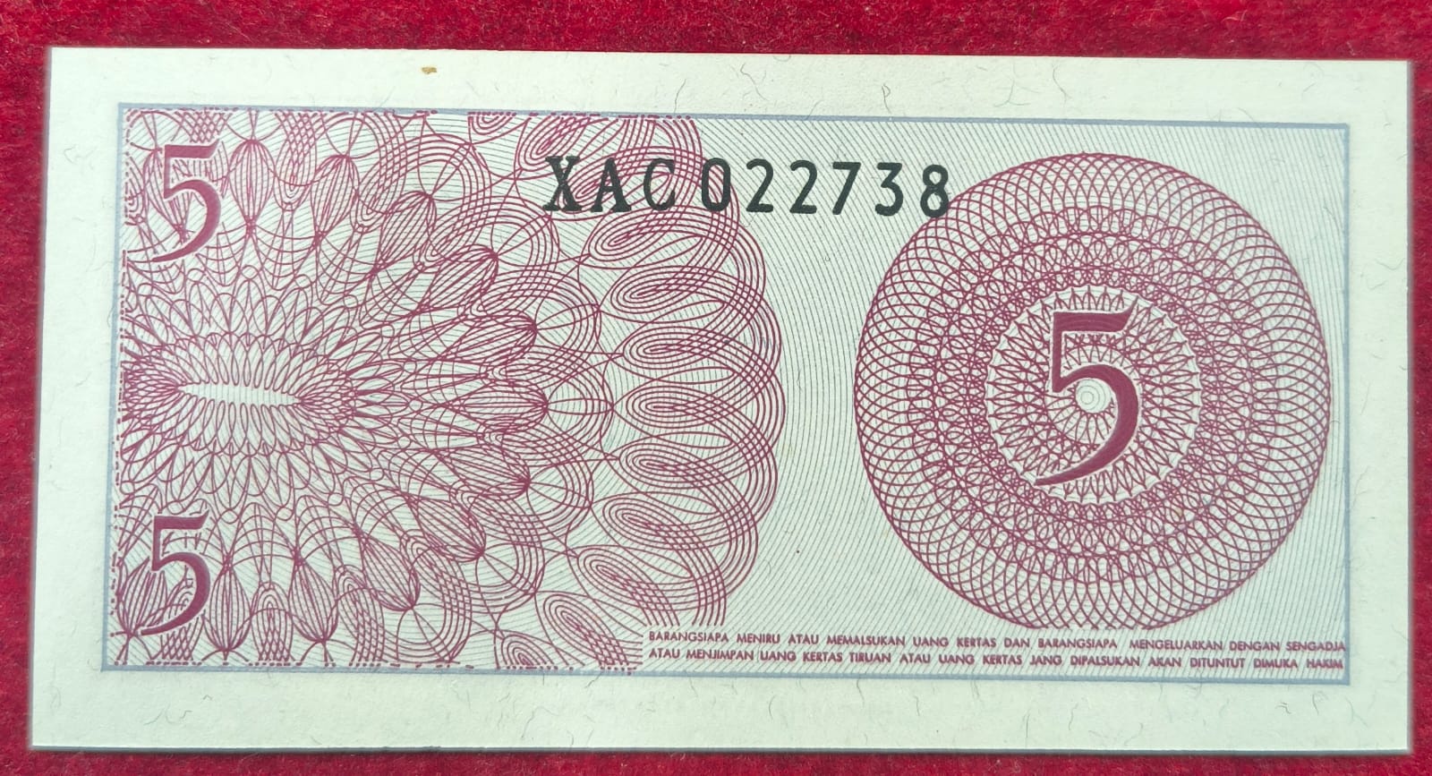INDONESIA 5 LIMA SEN GRM UNC BANK NOTE