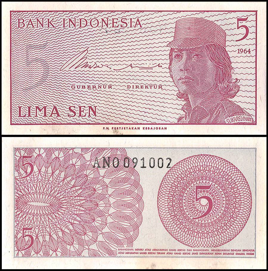Indonesia 5 Sen Banknote 1964 P91 UNC Unique and Rare