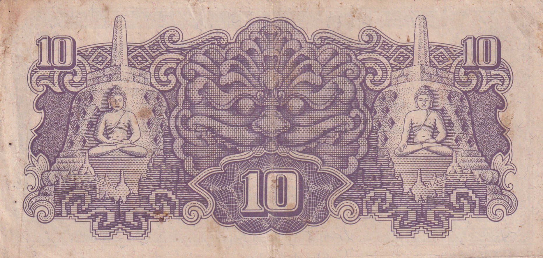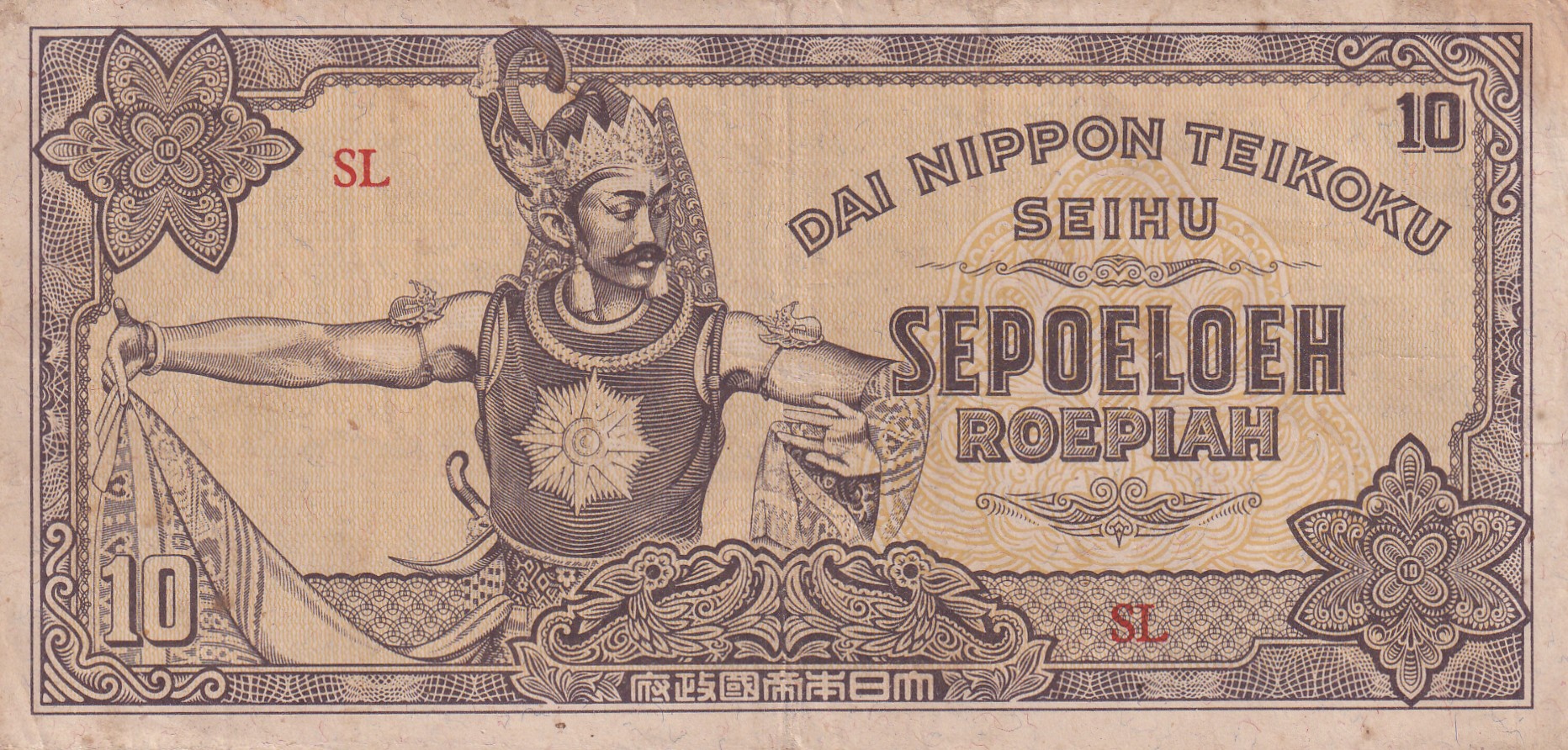 INDONESIA ,NETHERLAND EAST INDIES 10 ROEPIAH JAPANESE OCCUPATION 1942 BACK SIDE BUDDHA FROM BOROBODUR TEMPLE NOTE