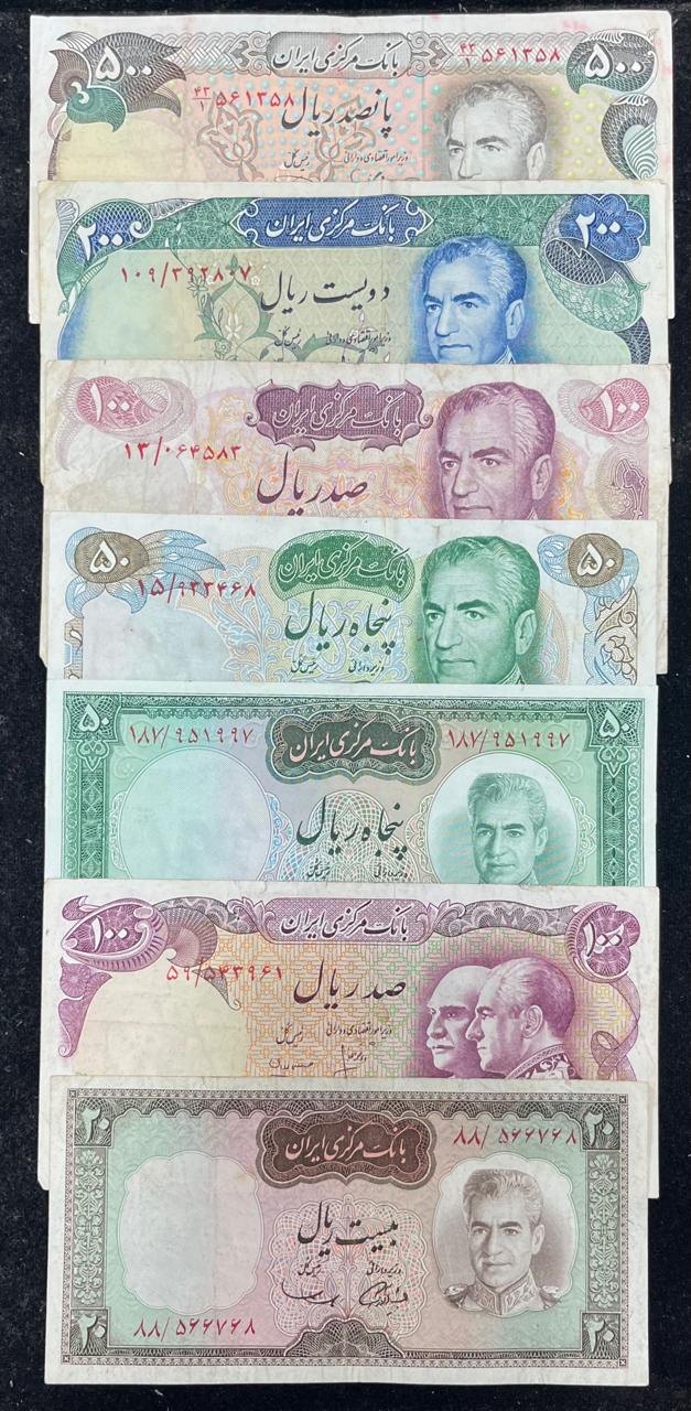 IRAN 7 DIFFRENT OLD ISSUE BANK NOTE SET EXTERMALY RARE SET