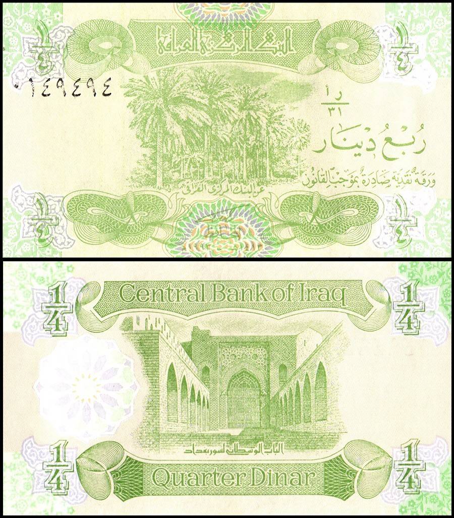 Iraq 1/4 Dinar Banknote 1993 (AH1413) P77 UNC Unique and Rare