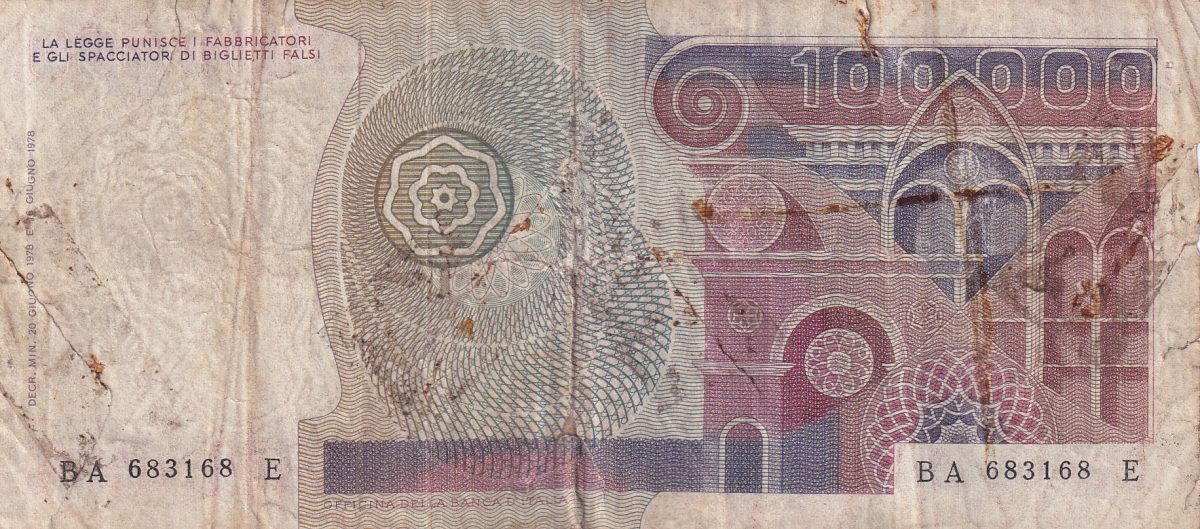 | Value | 100 000 Lire (100 000 ITL) |