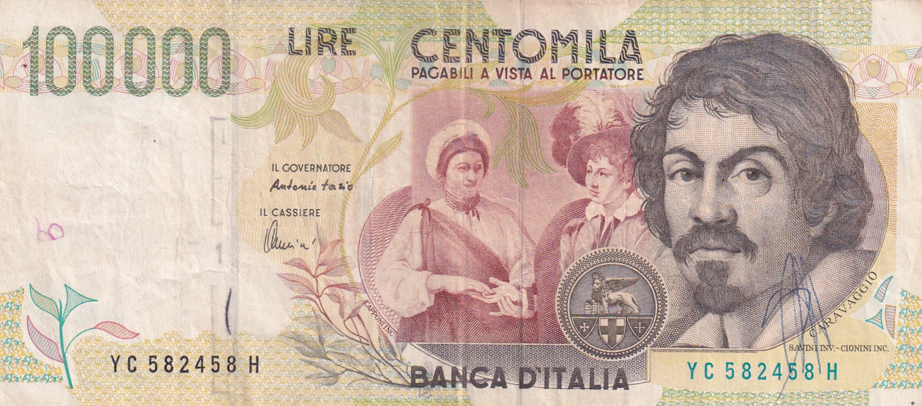 Italy 100 000 Lire Caravaggio – 2nd type Rare World Note #B2