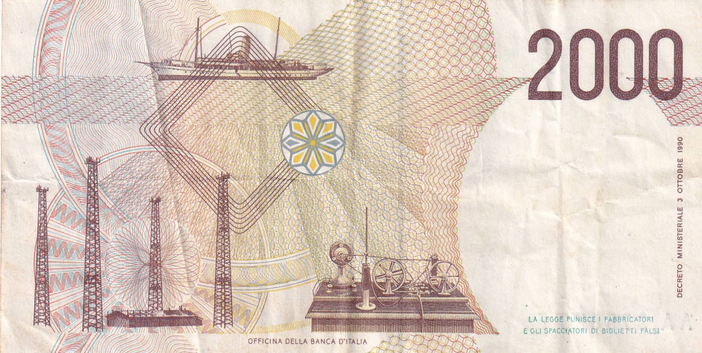 Italy 2000 Lire (Marconi) Rare World Note#B2