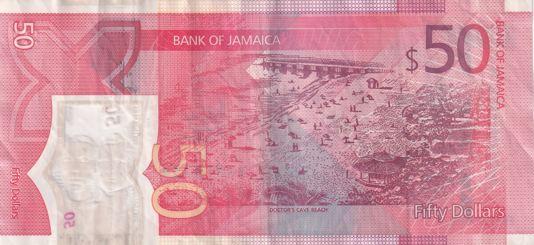 Jamaica 50 Dollars Rare Polymer Bank Note #B-2