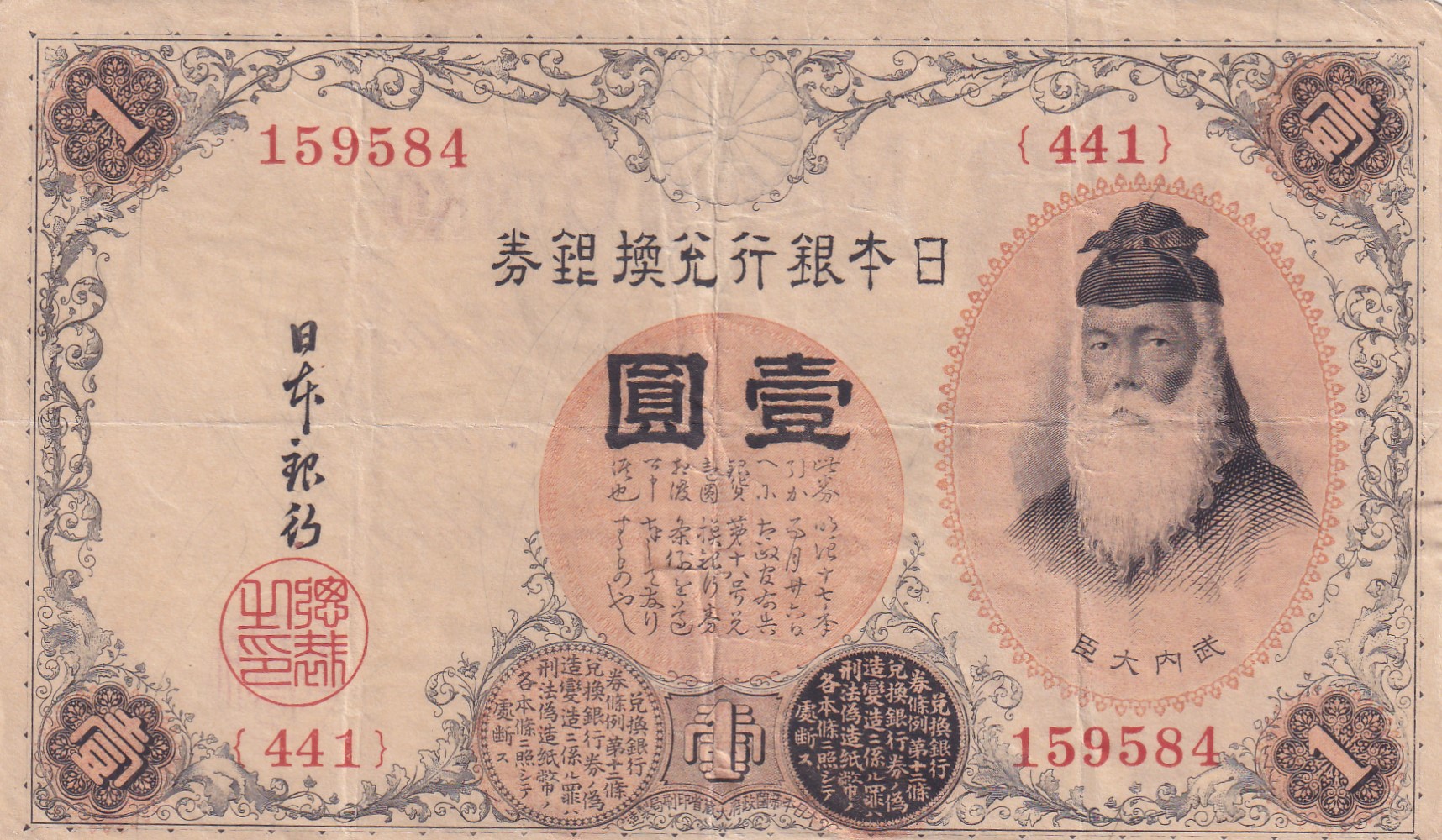 Japan 1 Yen 1916 Arabic serial Note #B2