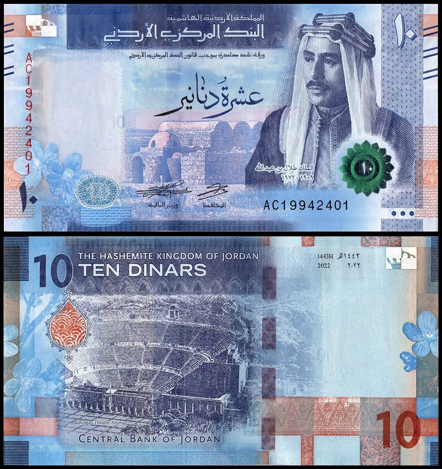 Jordan 10 Dinars Banknote 2022 (AH1443) P41 UNC Unique and Rare