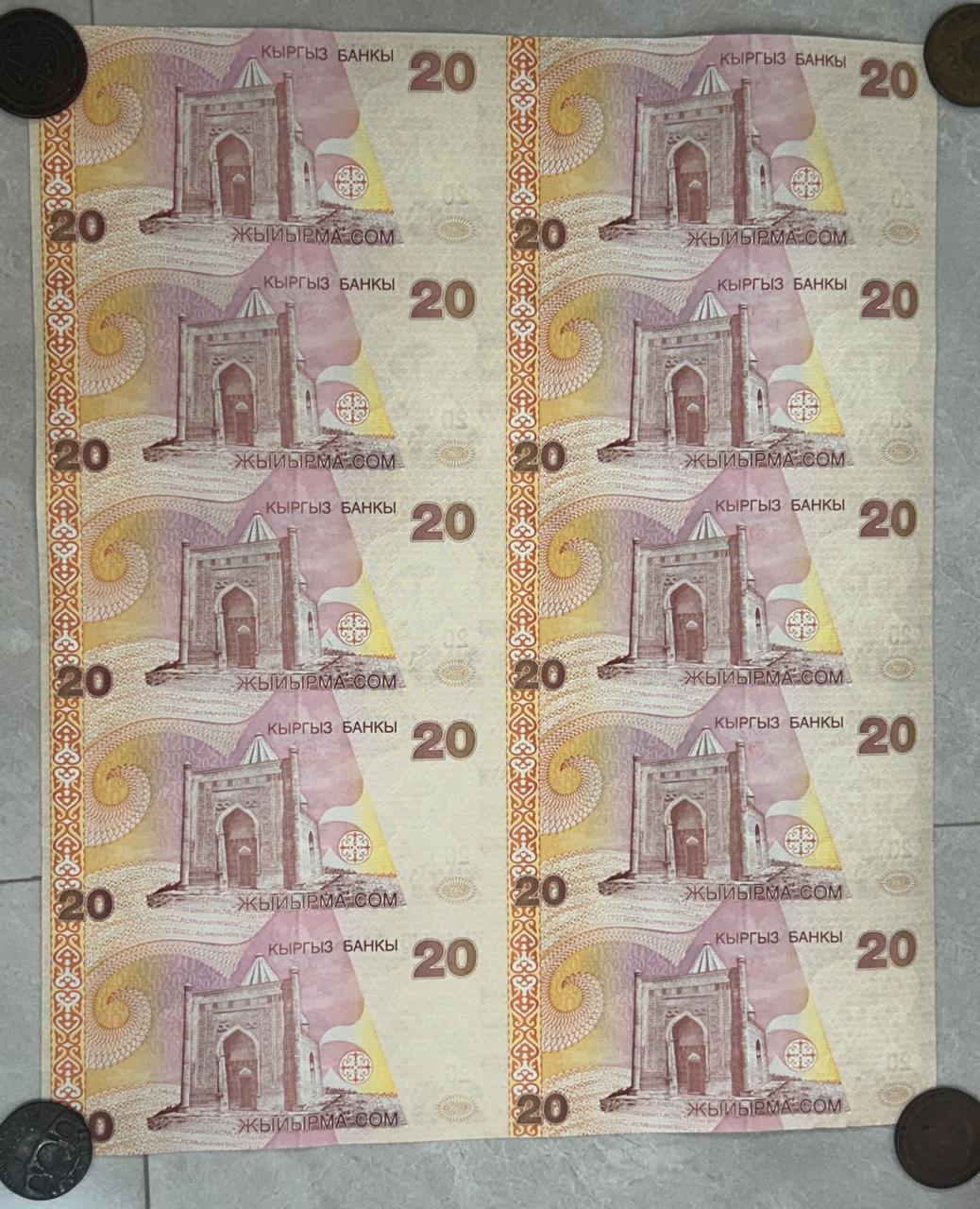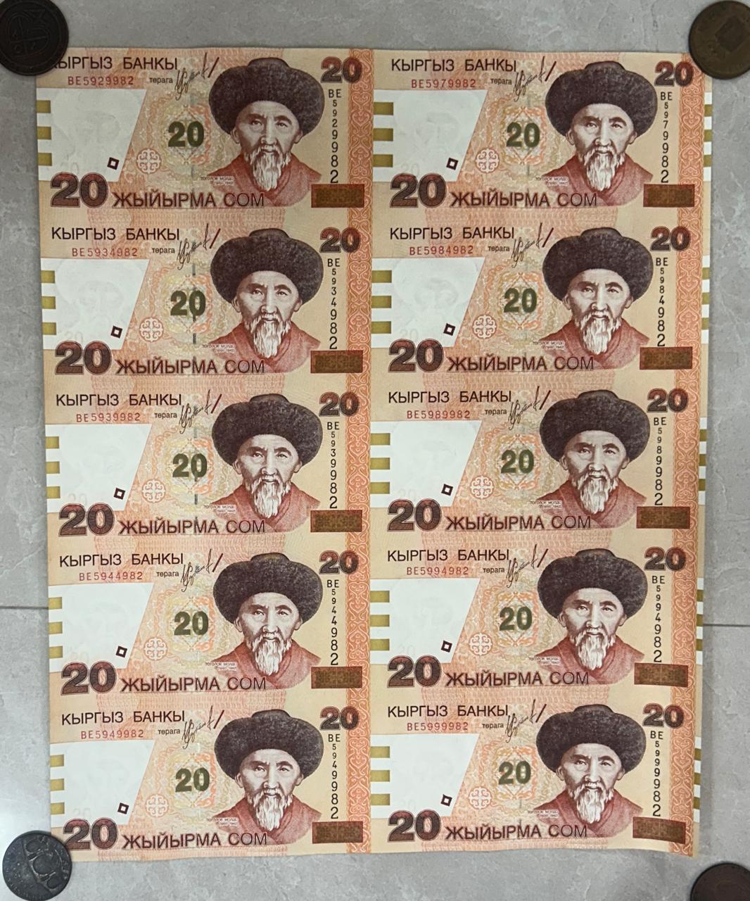 Kyrgyzstan 20 Som 10 note uncut sheet extremely rare sheet