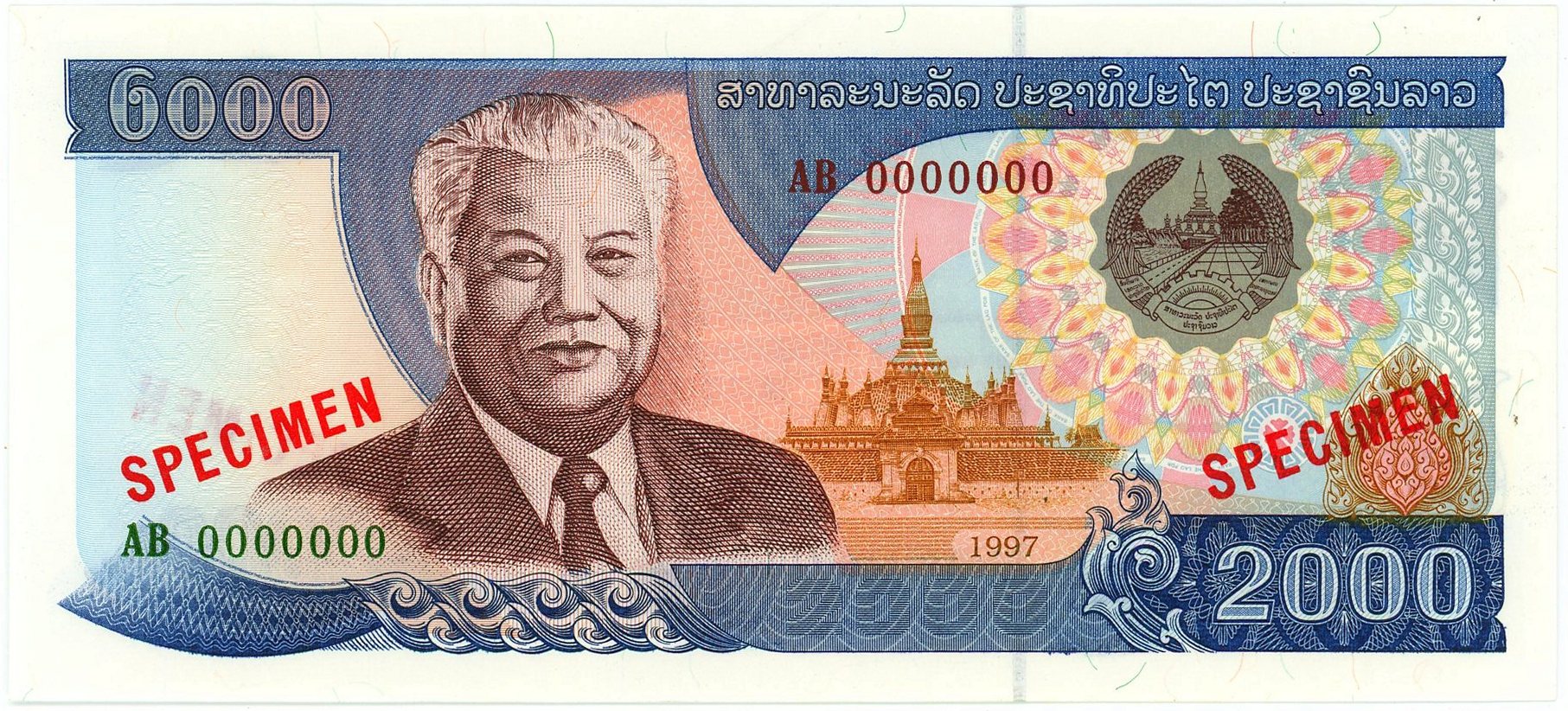 Laos 2000 Kip Specimen Issue World Banknote Specimen Collection Unique and Rare