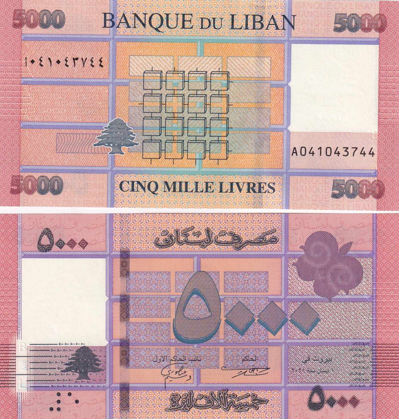 LIBAN 5000 Livres GEM UNC RARE NOTE