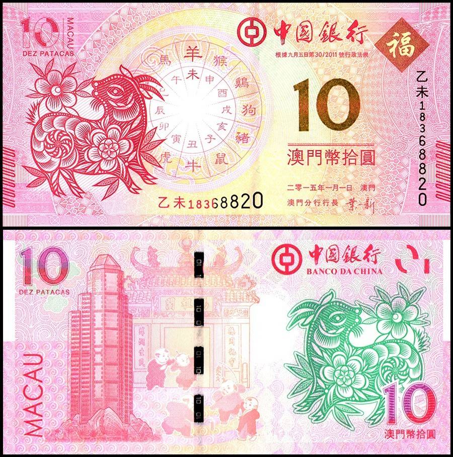 Macau 10 Patacas World Banknote 2015 P118 UNC Commemorative Year of the Goat 2015 UNC Unique and Rare