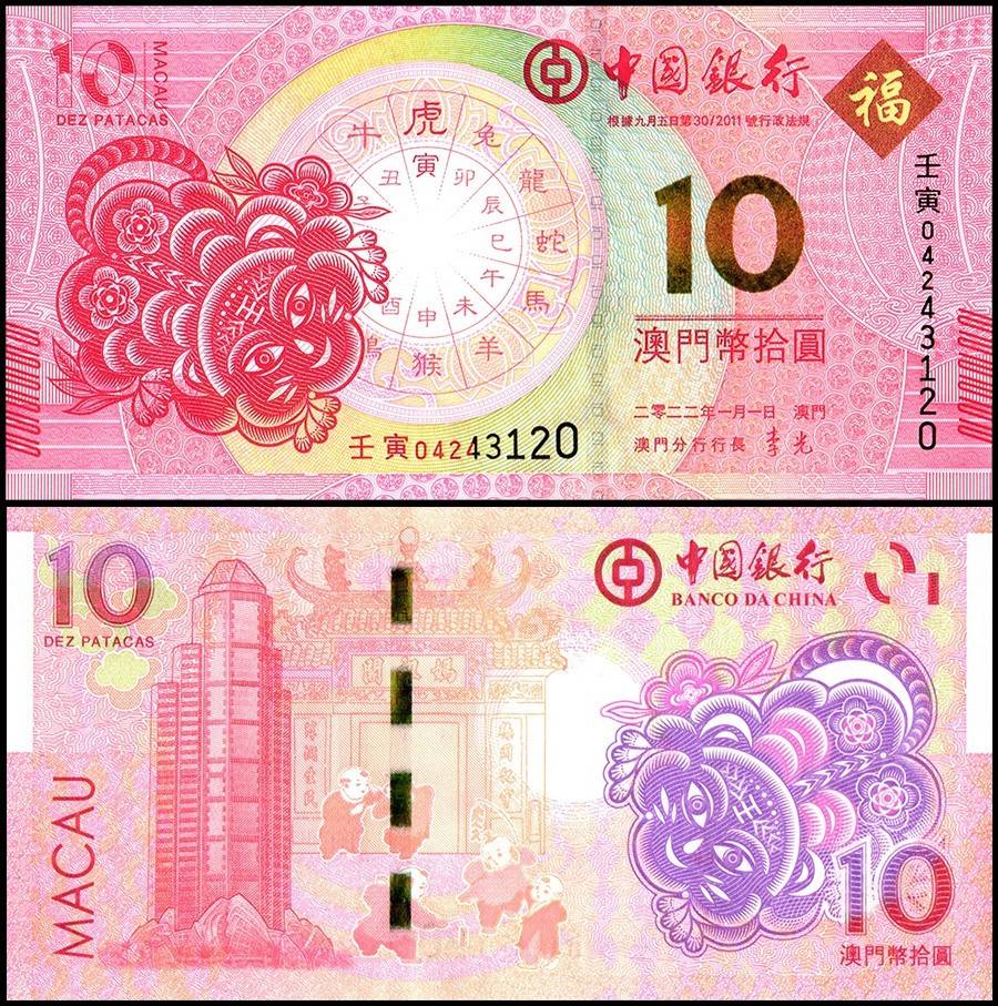 Macau 10 Patacas World Banknote 2022 P125 UNC Commemorative Year of the Tiger 2022 UNC Unique and Rare