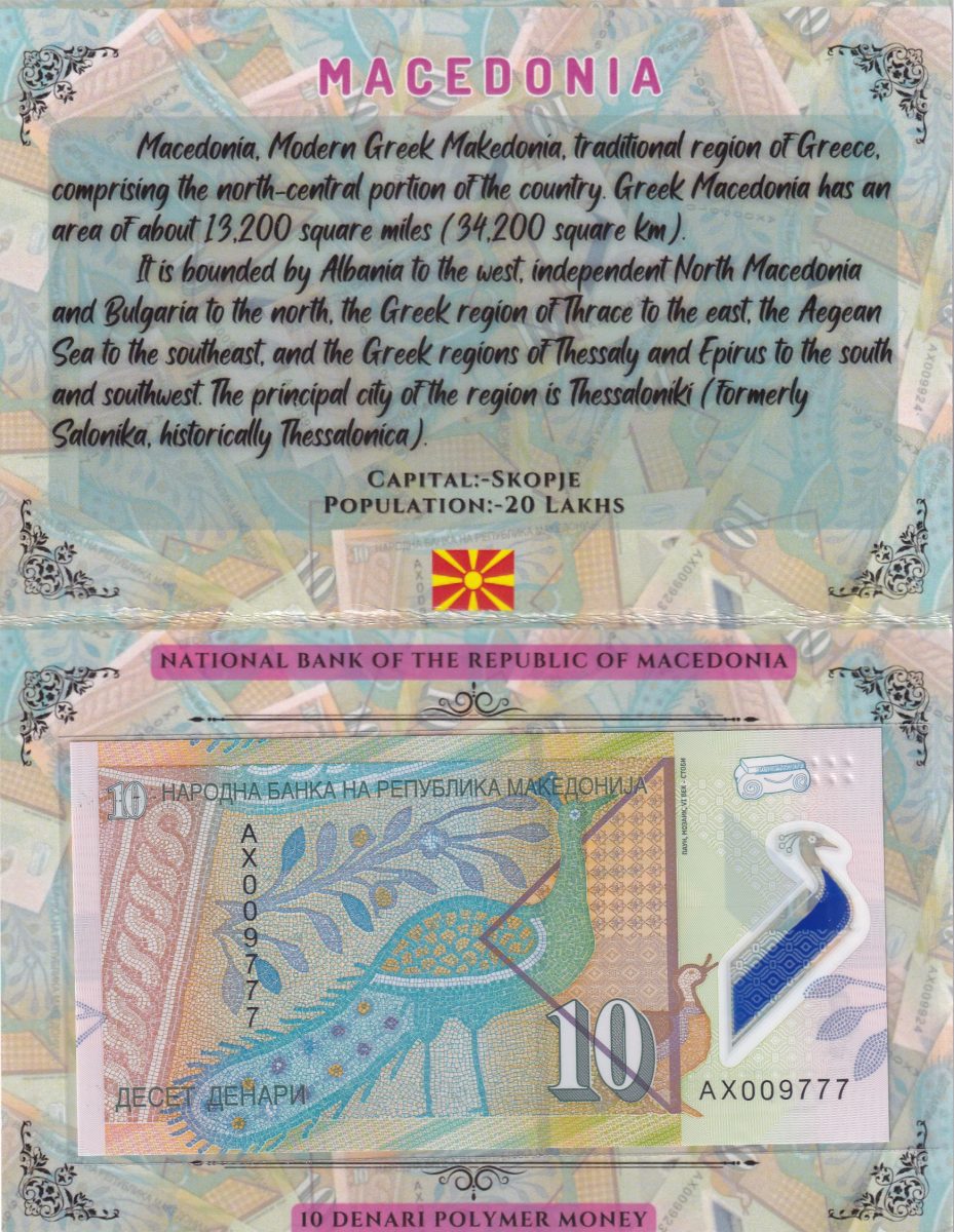 MACEDONIA 10 DENARI UNC NOTE WITH BEAUTIFUL PACKING