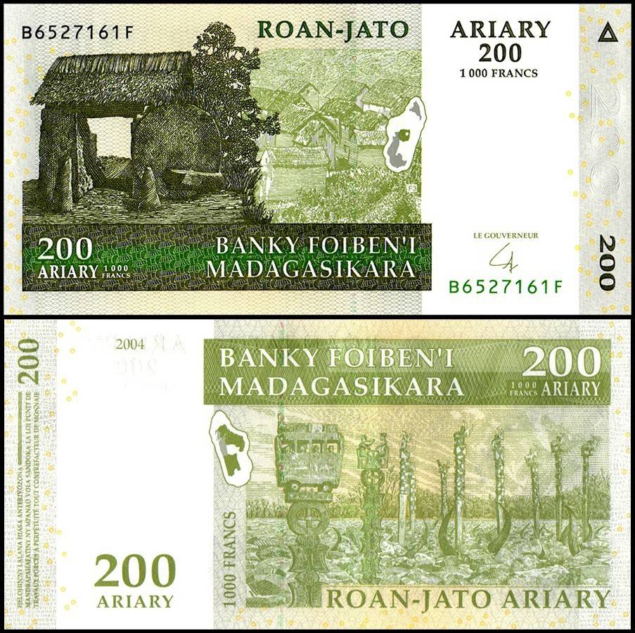 Madagascar 200 Ariary Banknote 2004 P87b UNC Unique and Rare