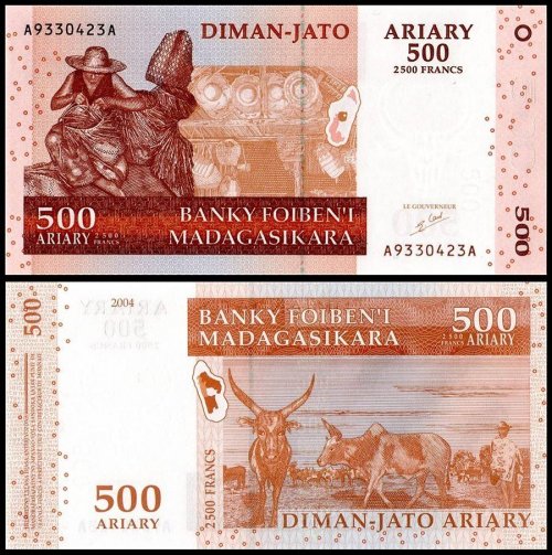 Madagascar 500 Ariary from 2004 features women with hat-weaving baskets World Banknote UNC Unique and rare
