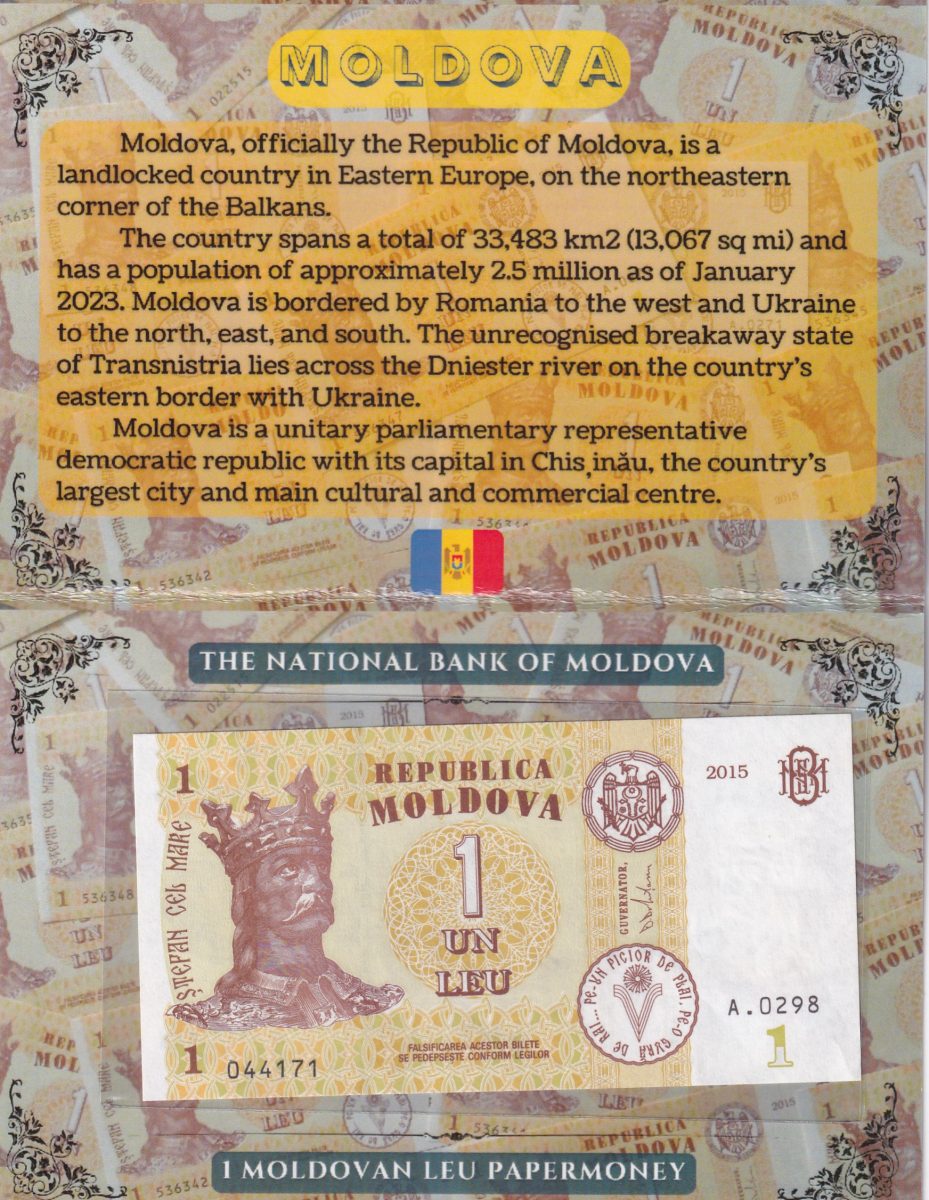MOLDOVA 1 MOLDOVAN LEU UNC NOTE WITH BEAUTIFUL PACKING