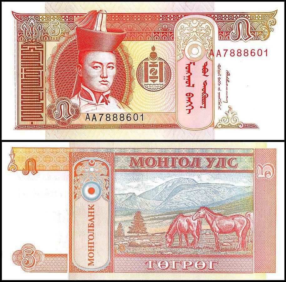 Mongolia 5 Tugrik Banknote 1993 ND P53 UNC Unique and Rare