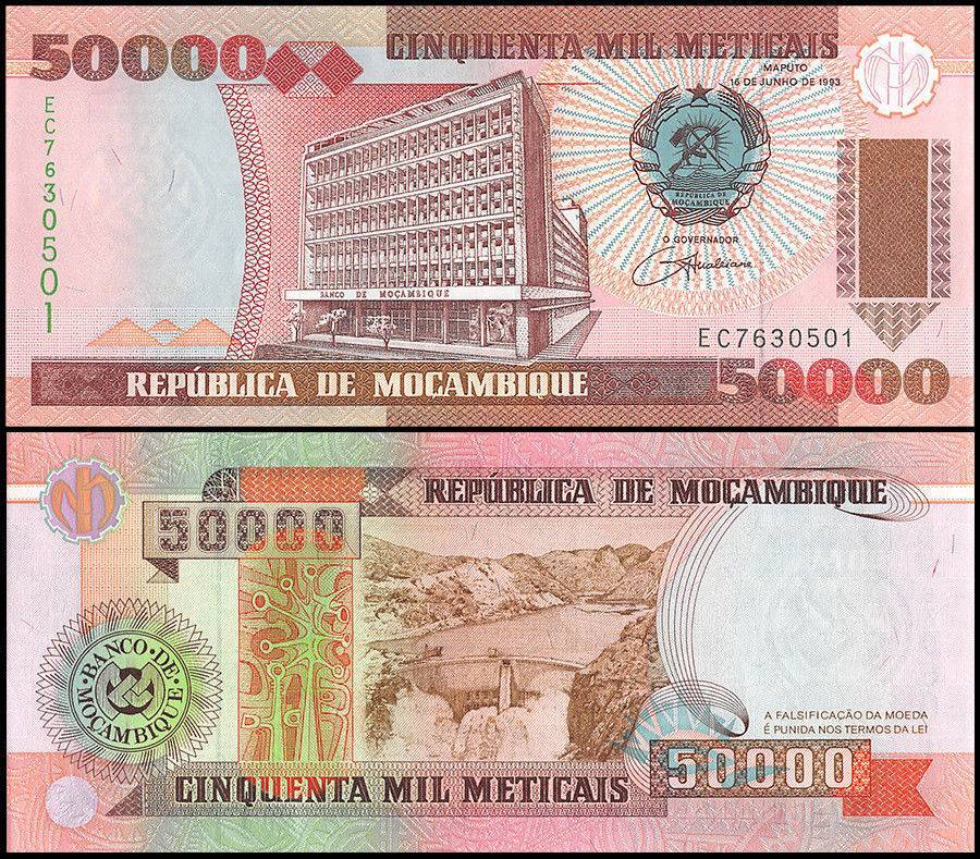 Mozambique 50000 Meticais Banknote 1993 P138 UNC Unique and Rare