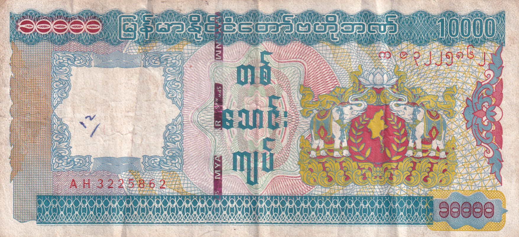 Myanmar 10 000 Kyats Rare Bank note #B-2