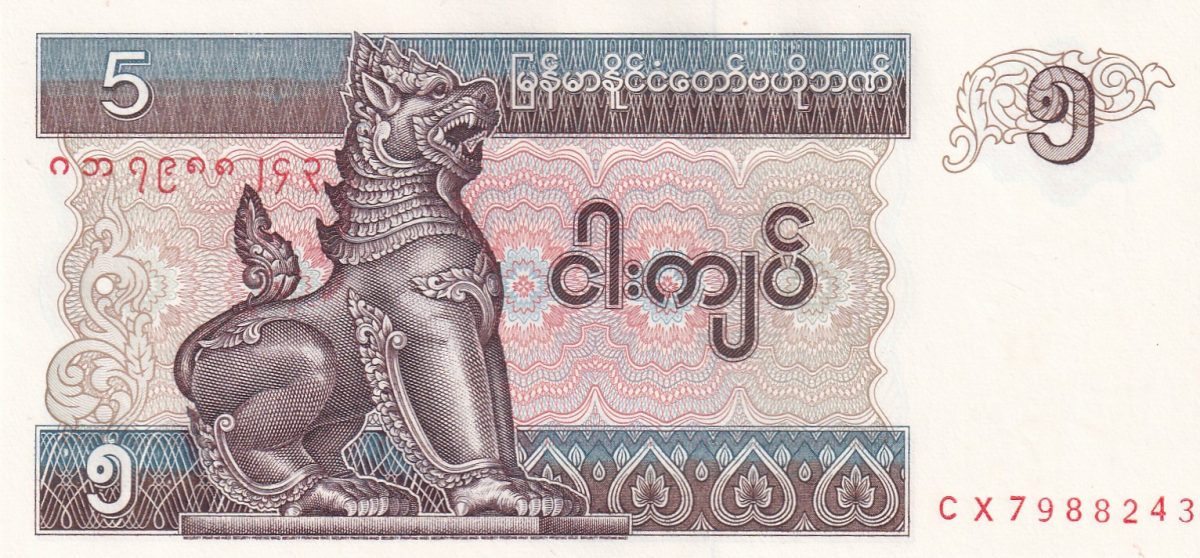 | Value | 5 Kyats 5 MMK = INR 0.20 |
